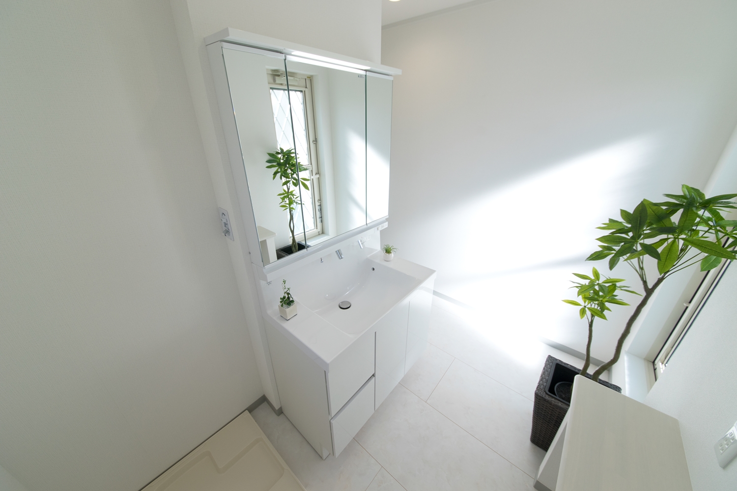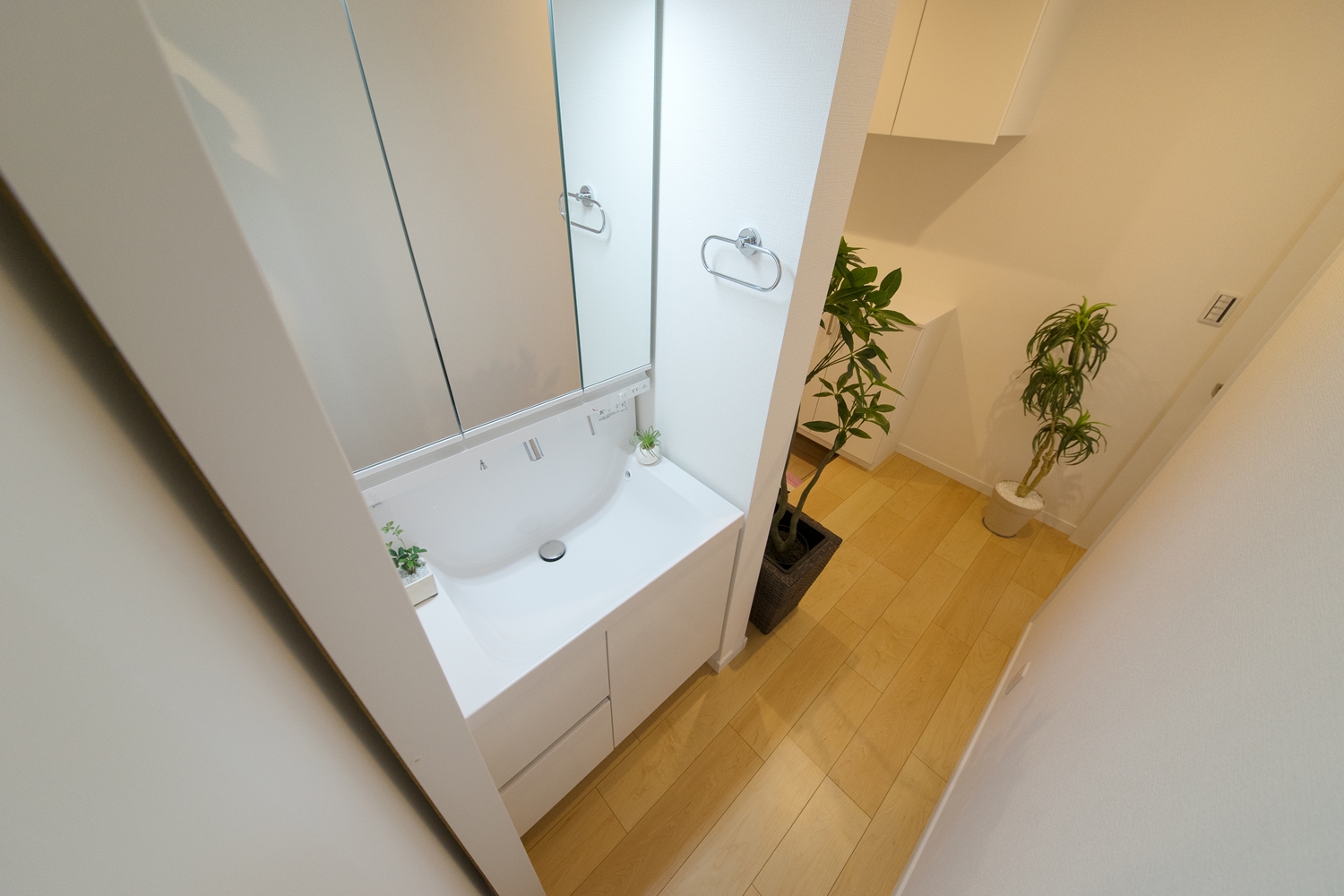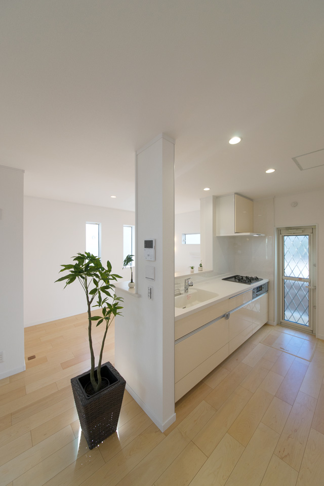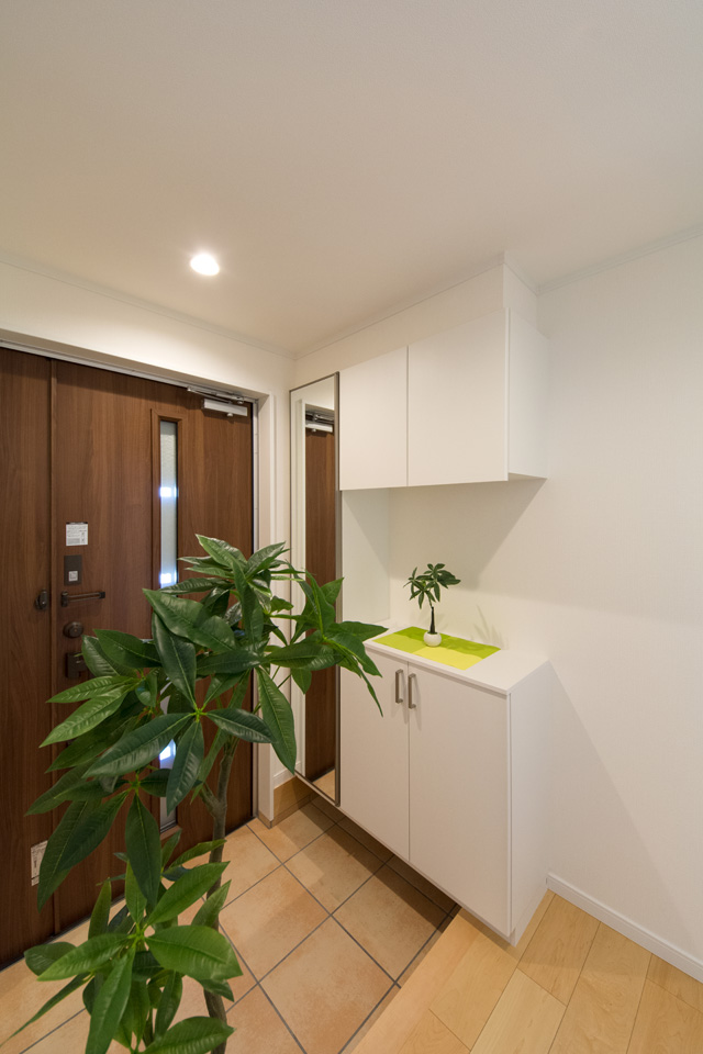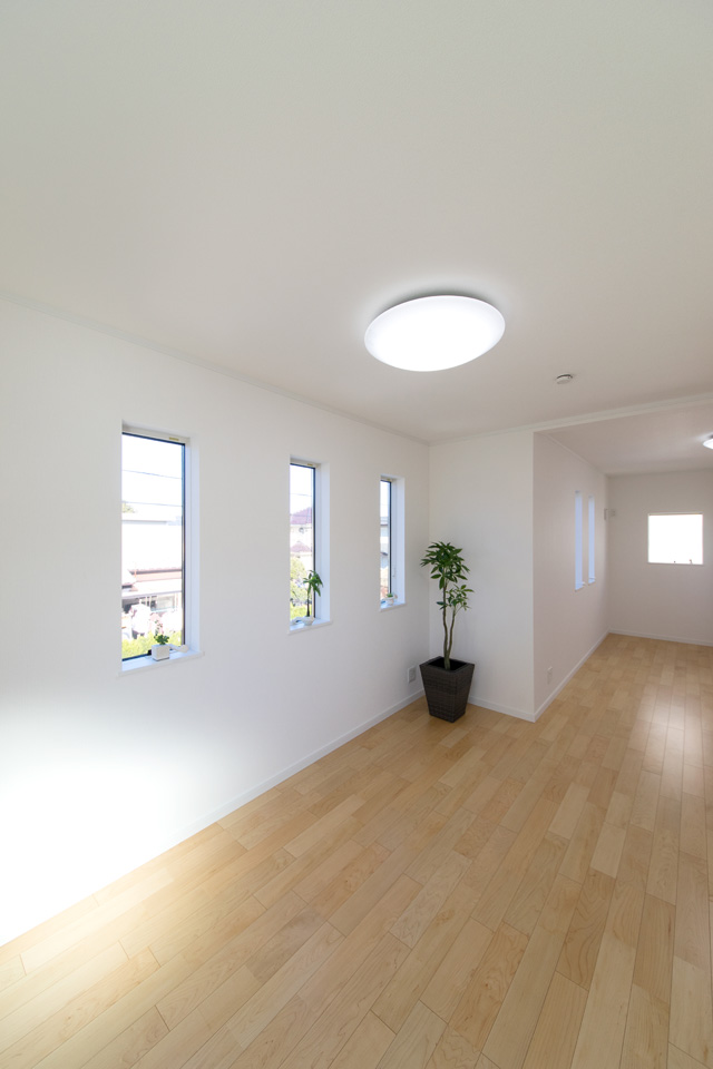 お風呂や洗面室は実はかなりのプライベート空間です。洗濯機が洗面室にあれば、汚れた衣類が置きっぱなしになっていたり。。。あまり来客には見てほしくない部分を全て2Fへ持っていくことで、1Fが生活感の無いスッキリとした広い空間となり、プライベートな空間としっかり分けられます。