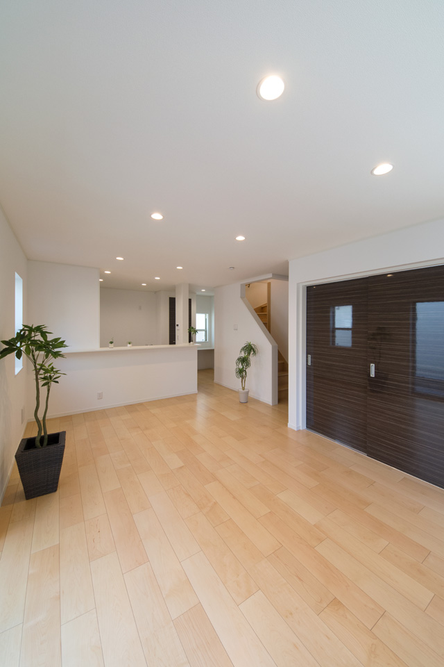 1階から2階へと階段を中心にした回遊性のある間取り。「家事ラクぐるぐる回遊動線」で行き止まりの無いストレスフリーな設計です。