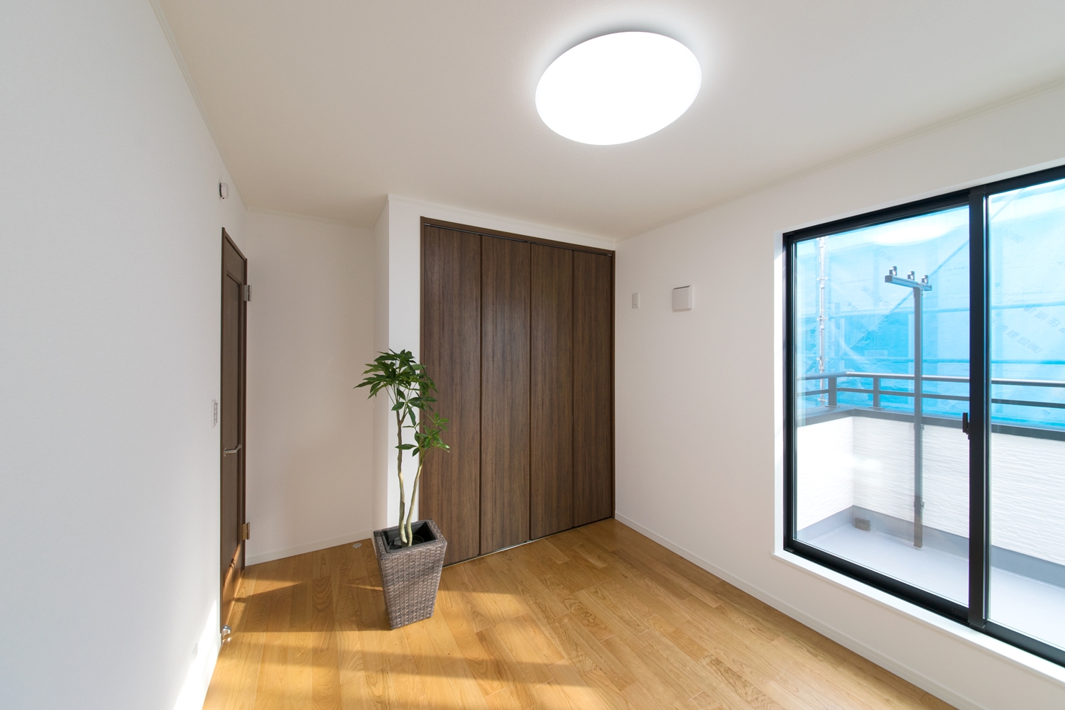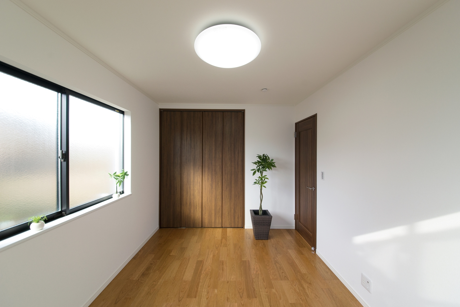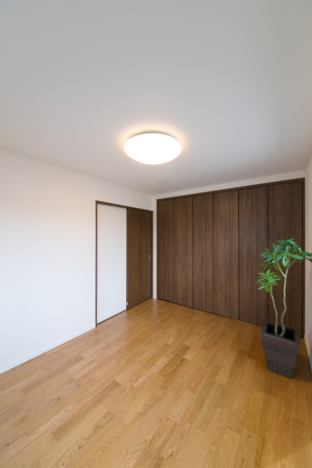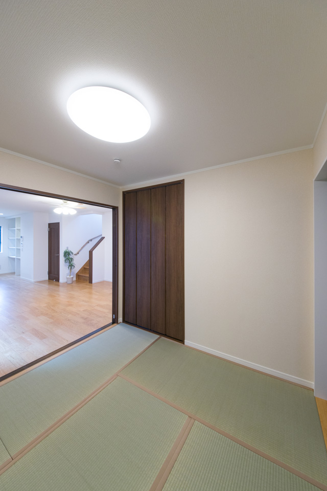 1F畳敷き洋室。畳のグリーンと、洋風クローゼットのミディアムブラウンが、和モダンな空間を演出します。