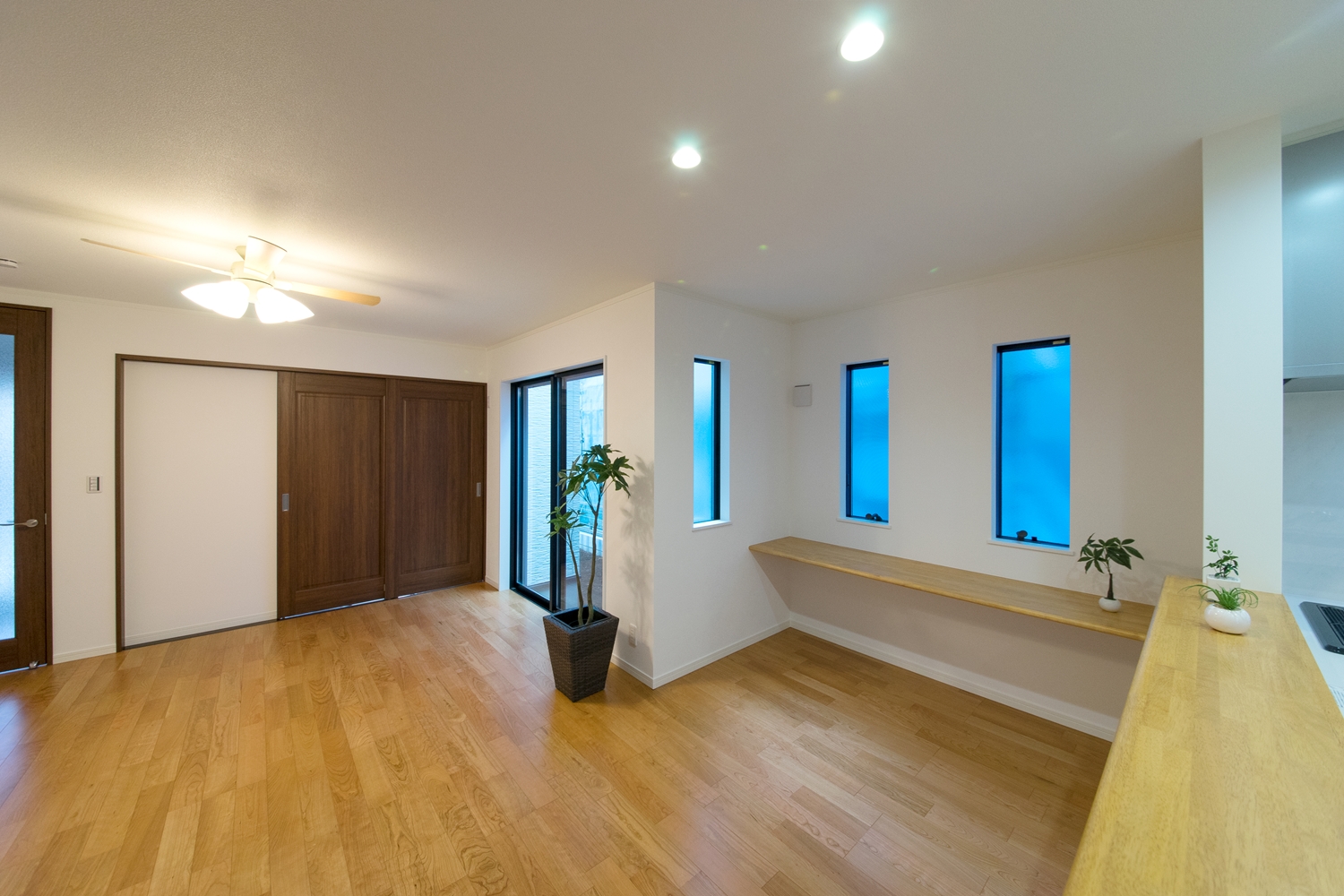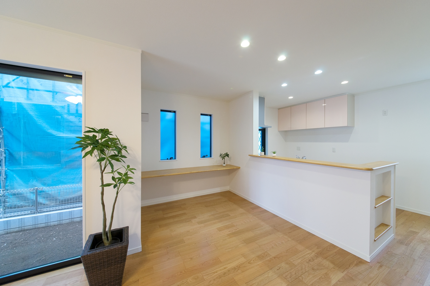 ダイニングの窓際に、人気の『スタディスペース』を設えました。お子様が勉強したり、PCコーナーやミニ書斎にするなど用途は様々です。
