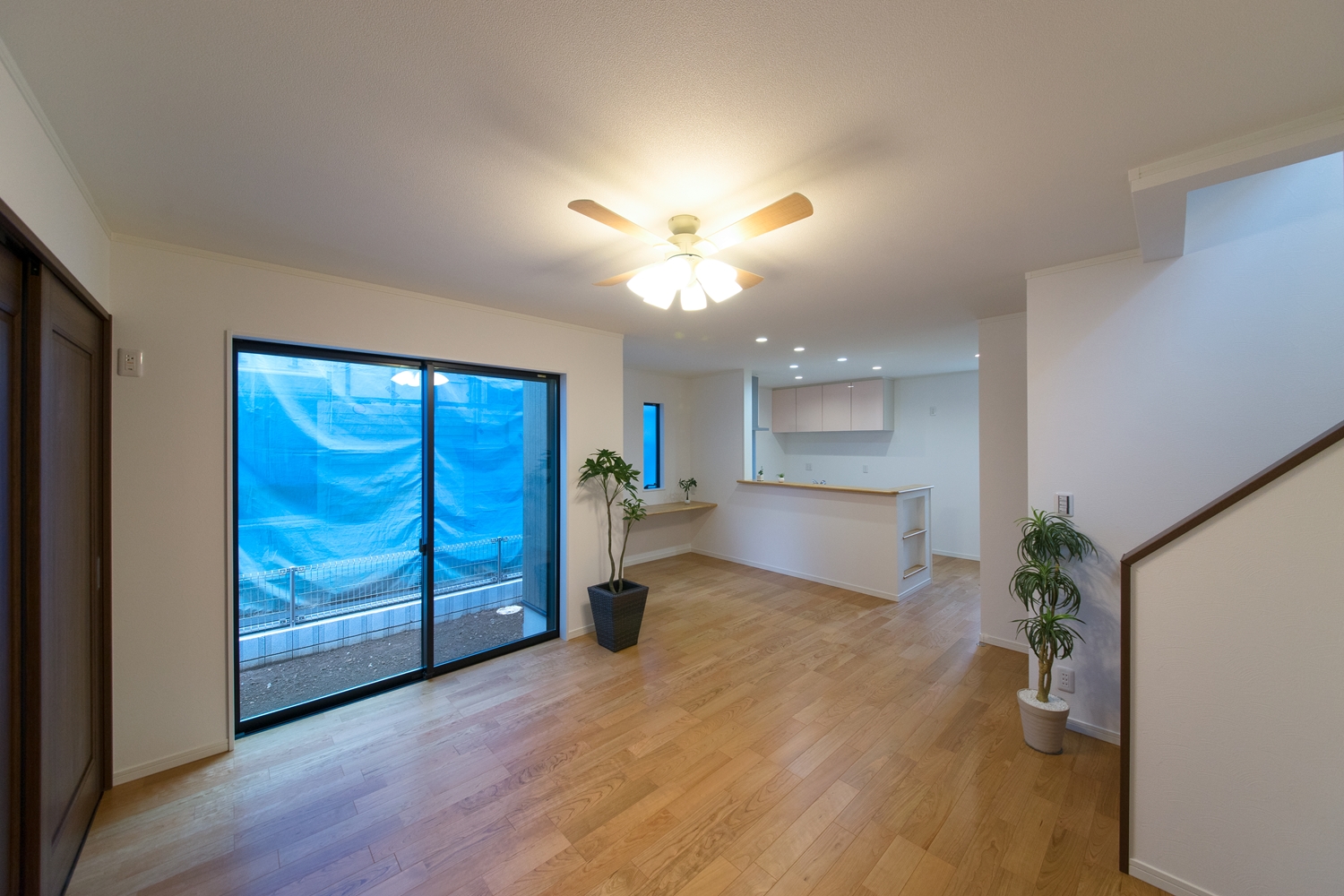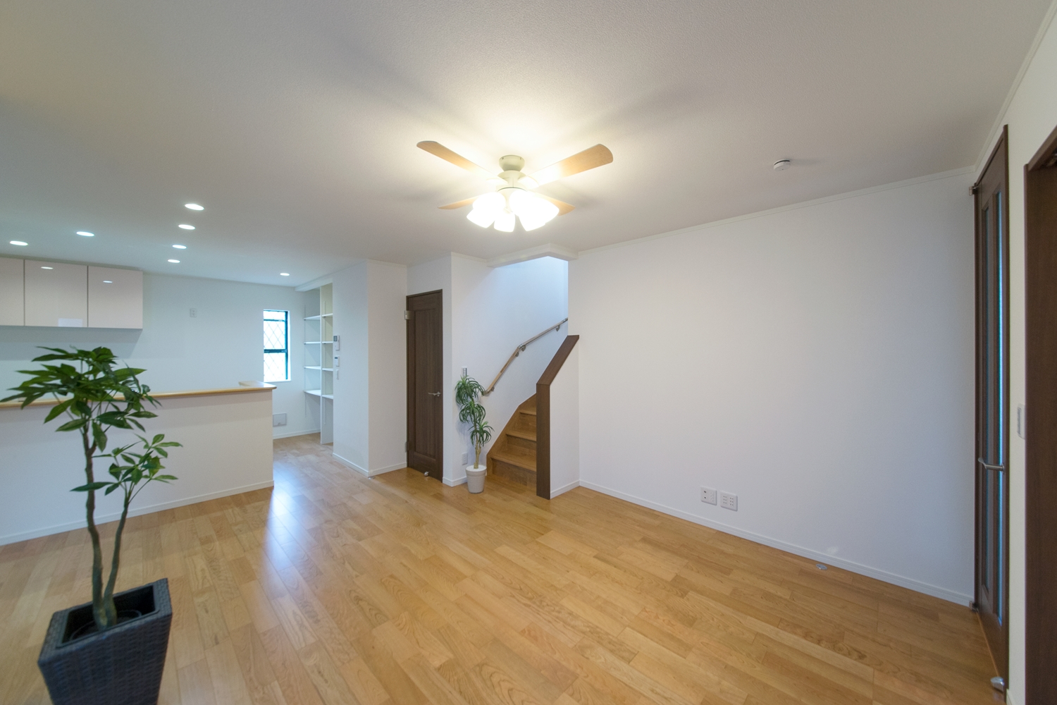 お子様の帰宅時に、リビングを通って家族が自然と顔を合わせ、コミュニケーションが取りやすくなる様、リビング階段タイプにしました。