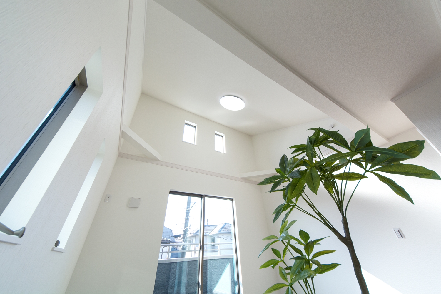 空間を有効活用し、より快適な生活を 勾配天井を取入れた明るく開放感のある家