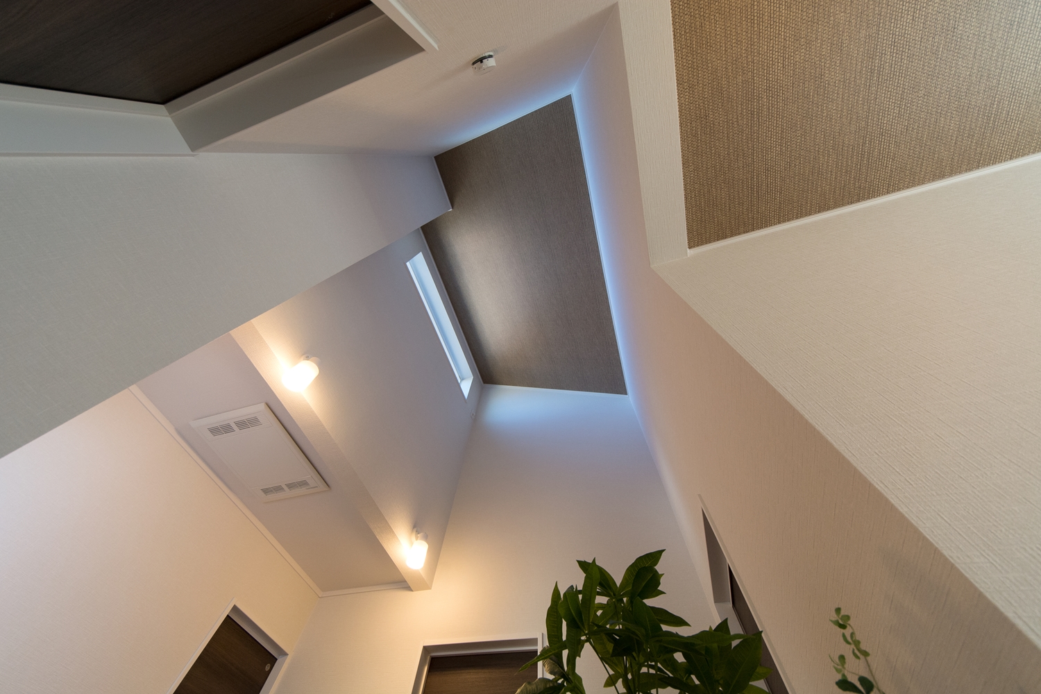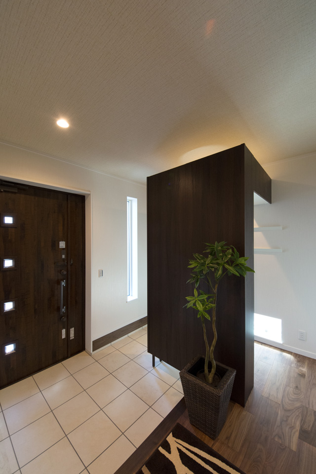 ゆとりのある玄関ホール。玄関脇のカウンターには小物などアイテムをディスプレイして楽しめます。