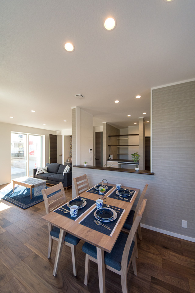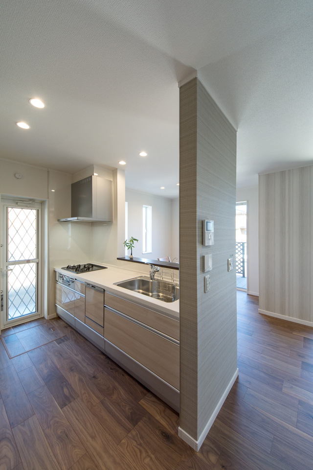 ダイニングを見渡せる対面式キッチン。家事をしながらご家族との会話も弾みます。