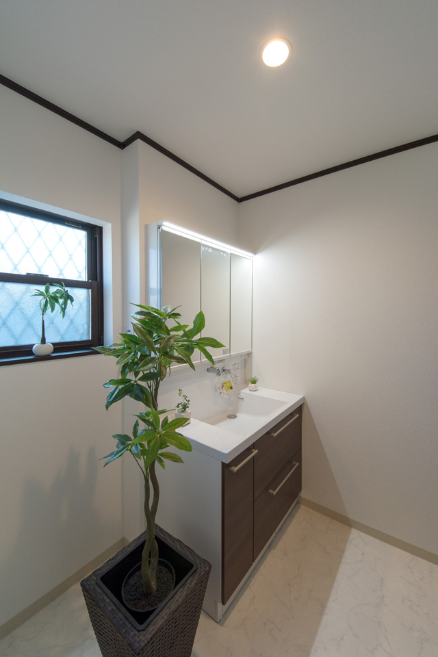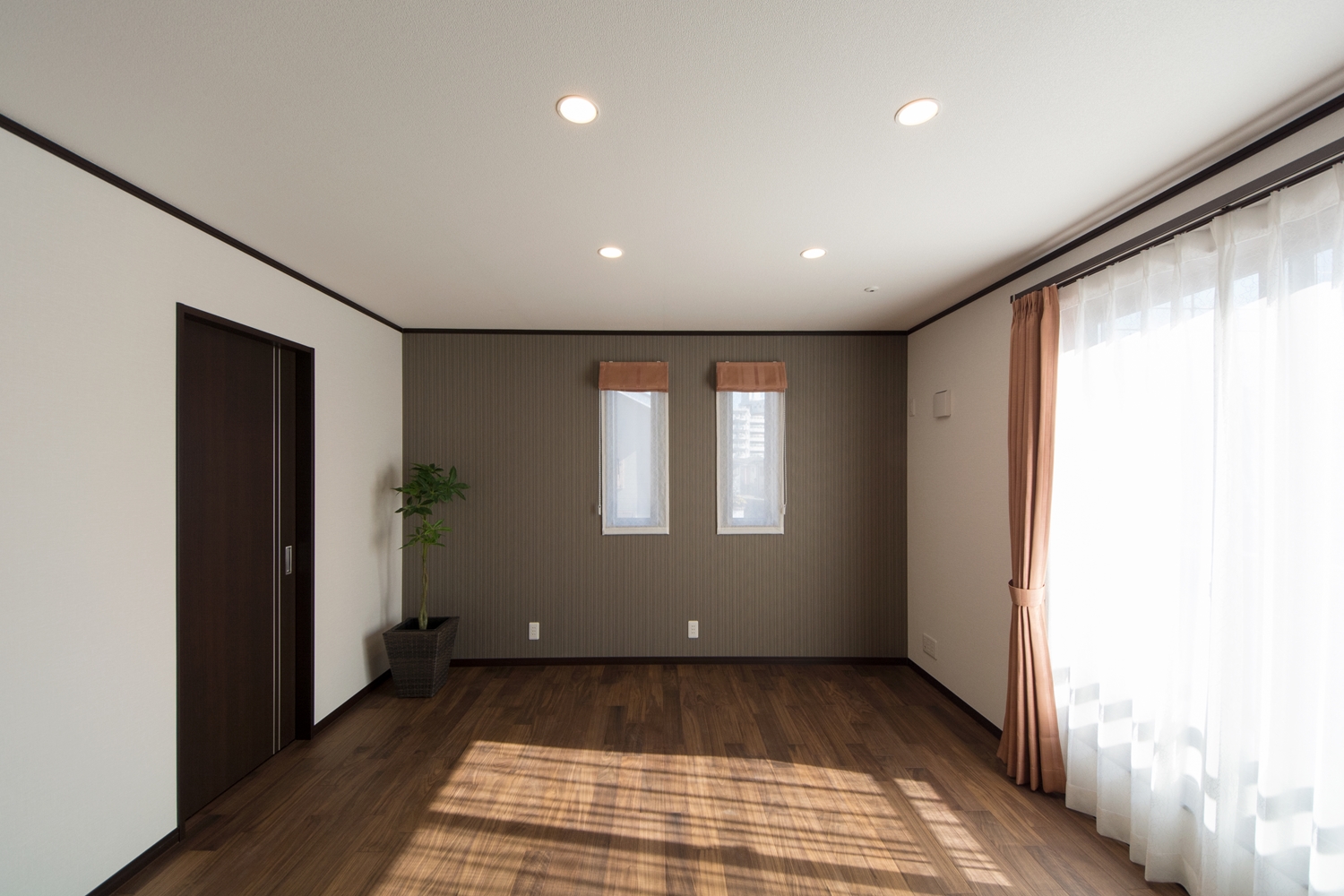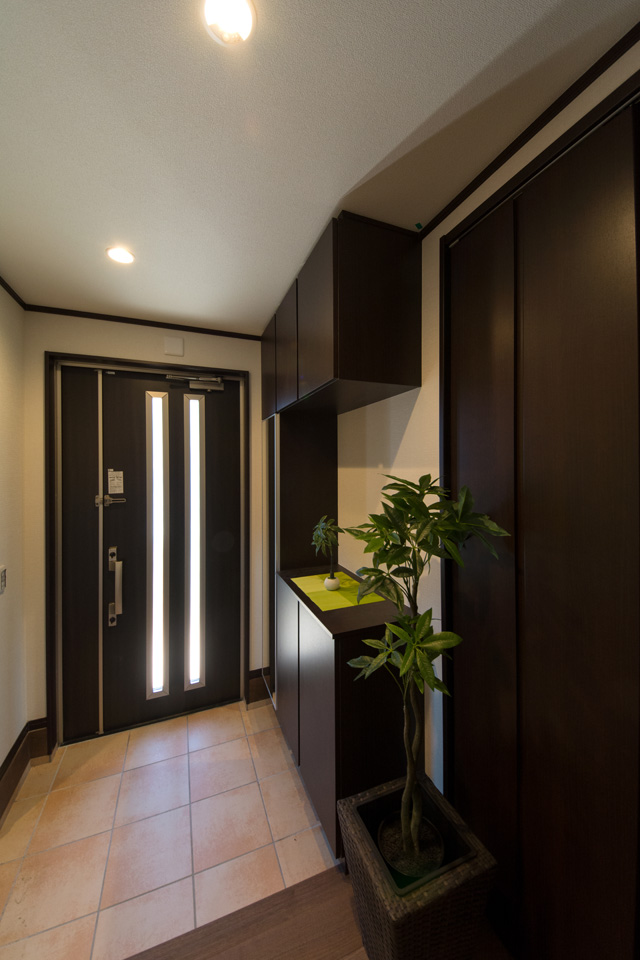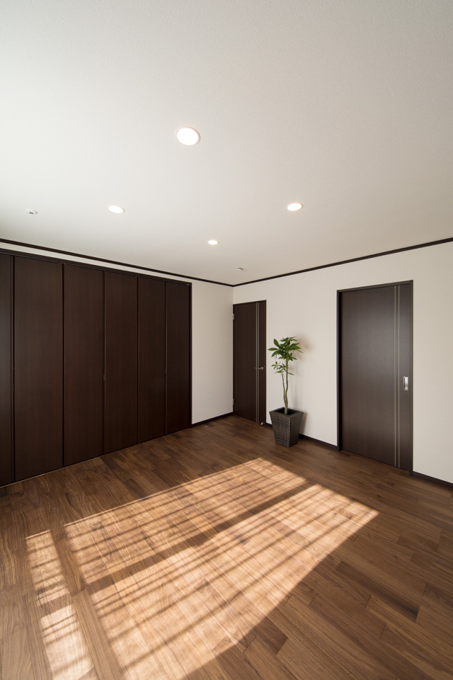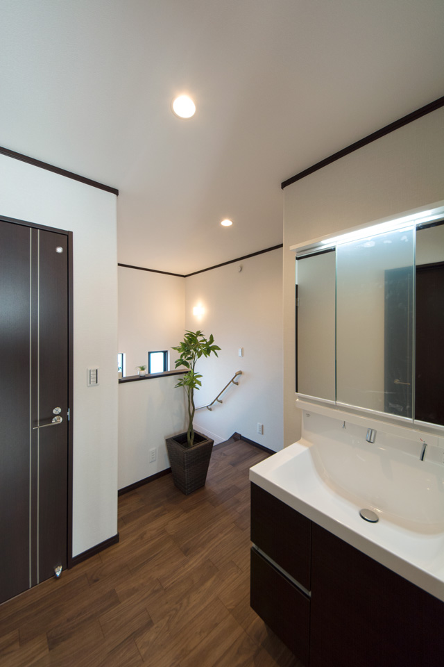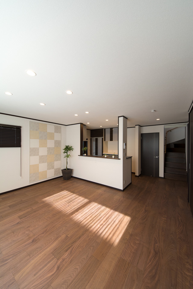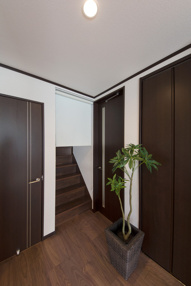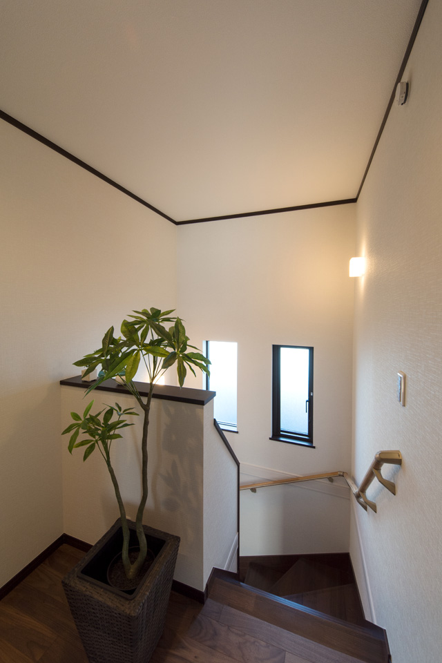 ブラックをベースに石積みブラウンのサイディングが個性を放ち、スタイリッシュな外観に。室内の柱の角はブルノーズ仕上げを施し、小さなお子様にも安心な設計です。隠れ家風書斎スペースやモダンな和空間など、やさしさと夢が溢れるこだわりの住まいです。