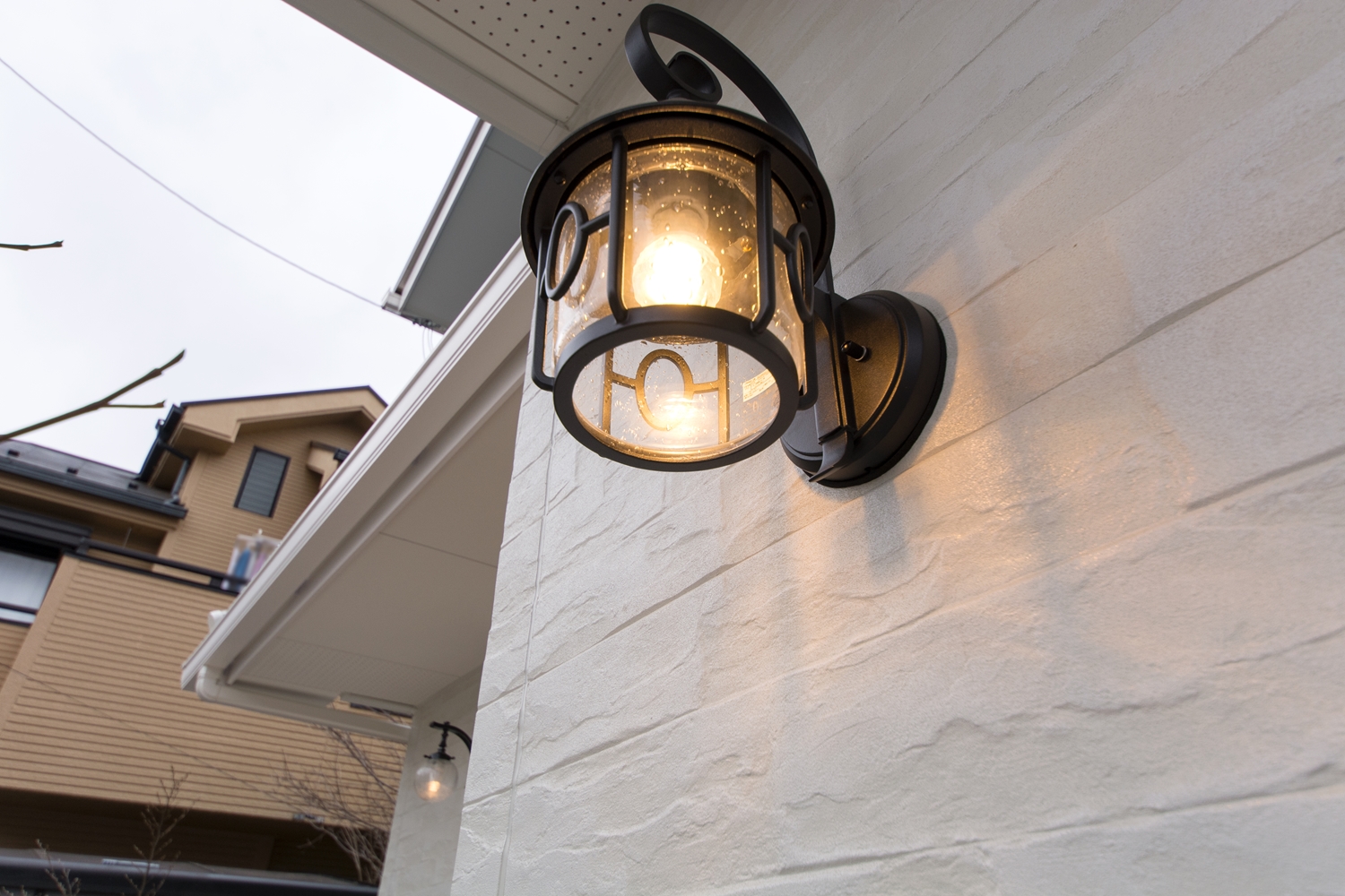 アンティーク調のガラス製ポーチライトの光が温かみをプラスします。