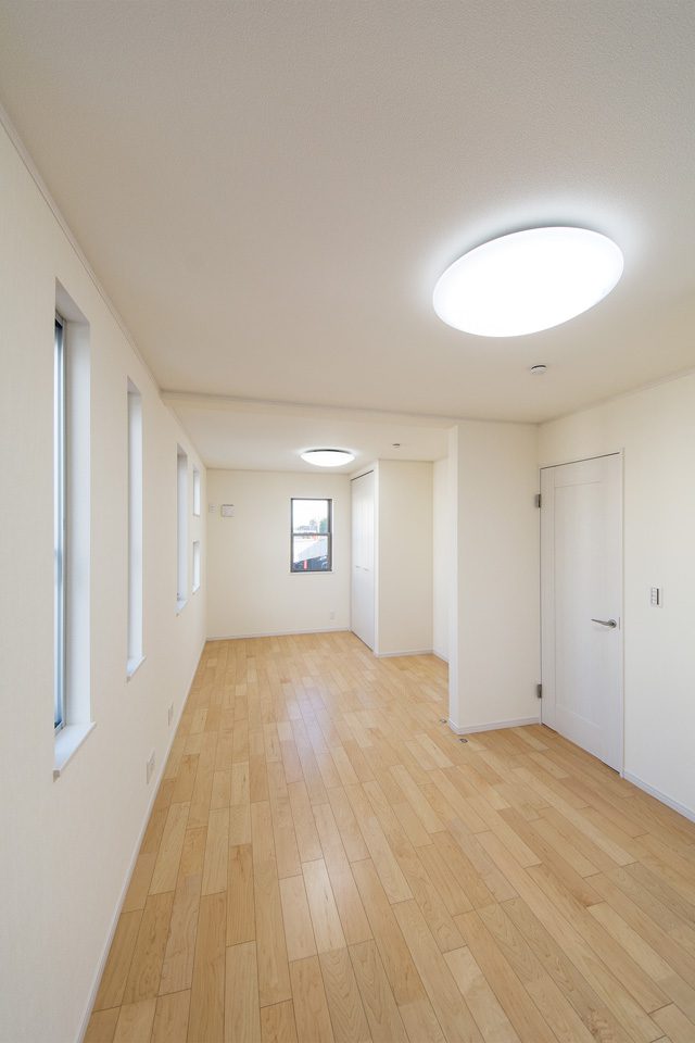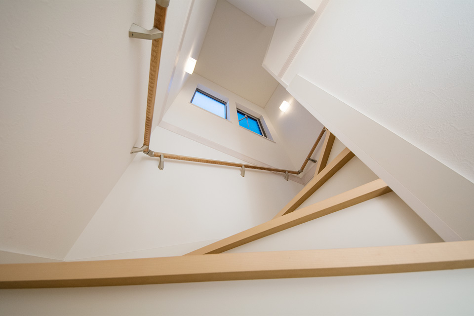 バルコニーなどの木の風合いと外壁の素材感が温かみを感じさせてくれる外観。 超高耐候「プラチナコート」仕様の外壁なので美しさも長持ち。 室内は1階をハイスタッド仕様にし、広々とした空間を演出。
