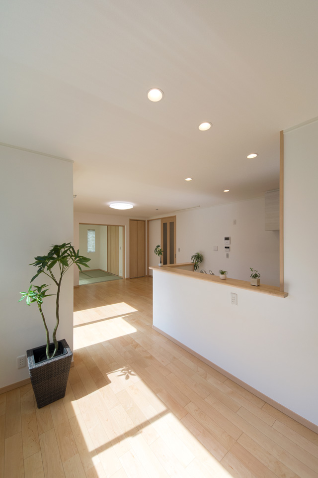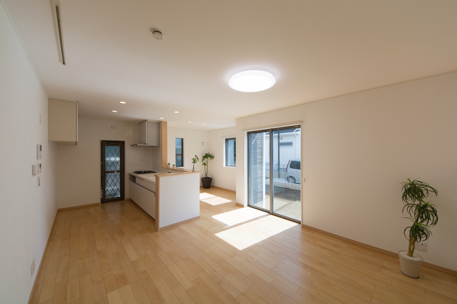 自然光に満ちた明るいLDKは、自然と家族が集う心地よさ。