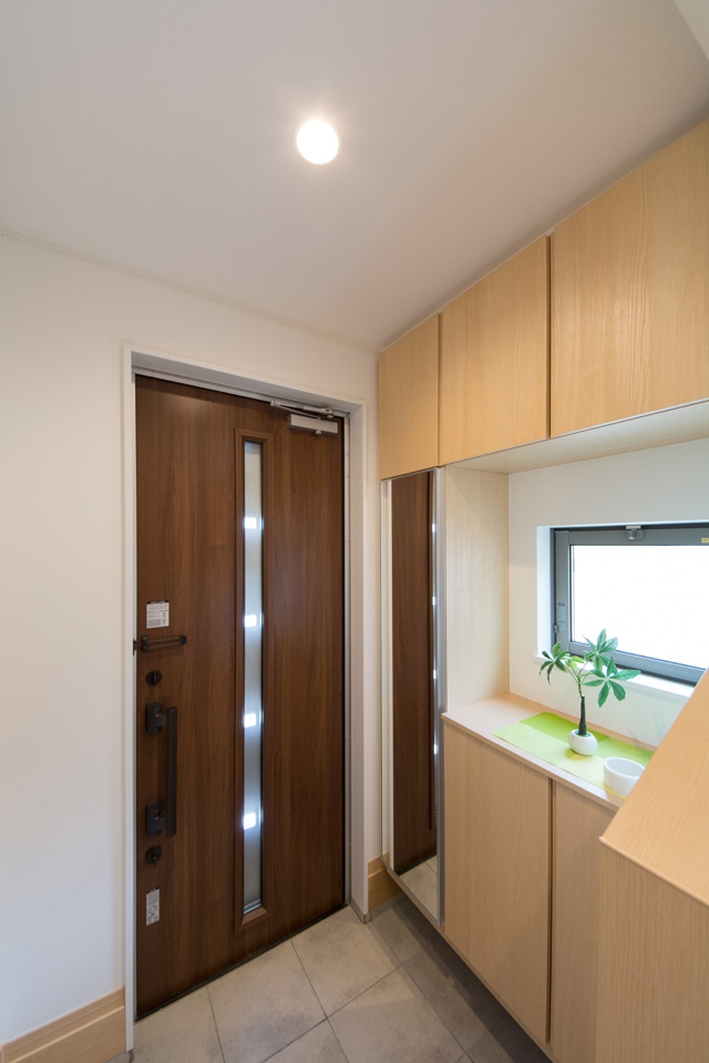 自然光が差し込む、明るく開放感のある玄関。気持ち良くお客様をお迎えできます。
