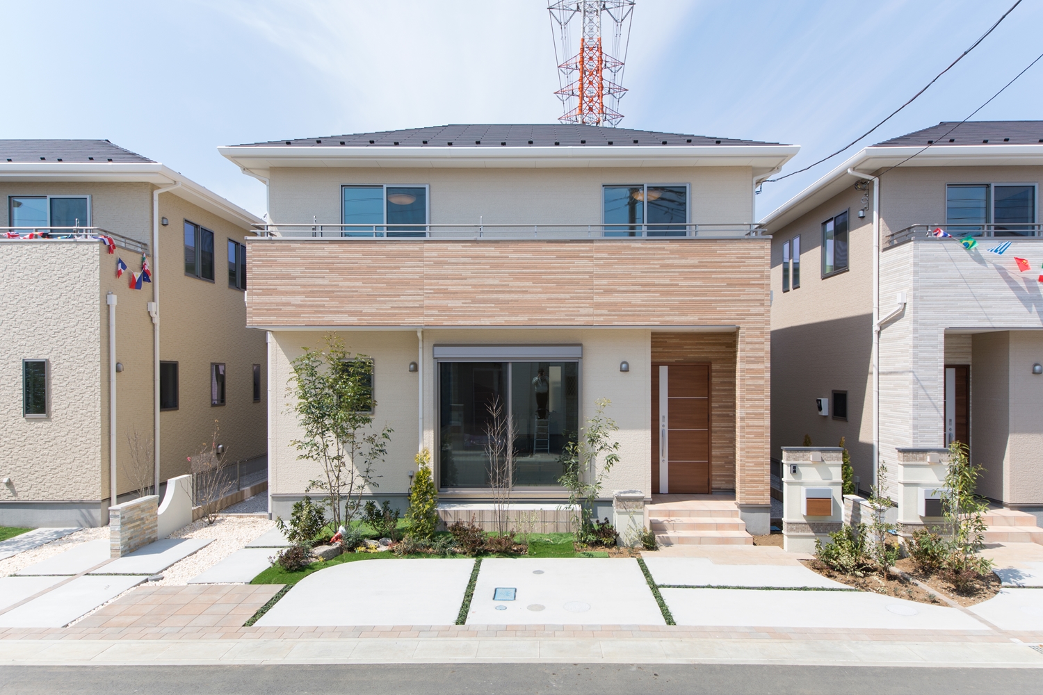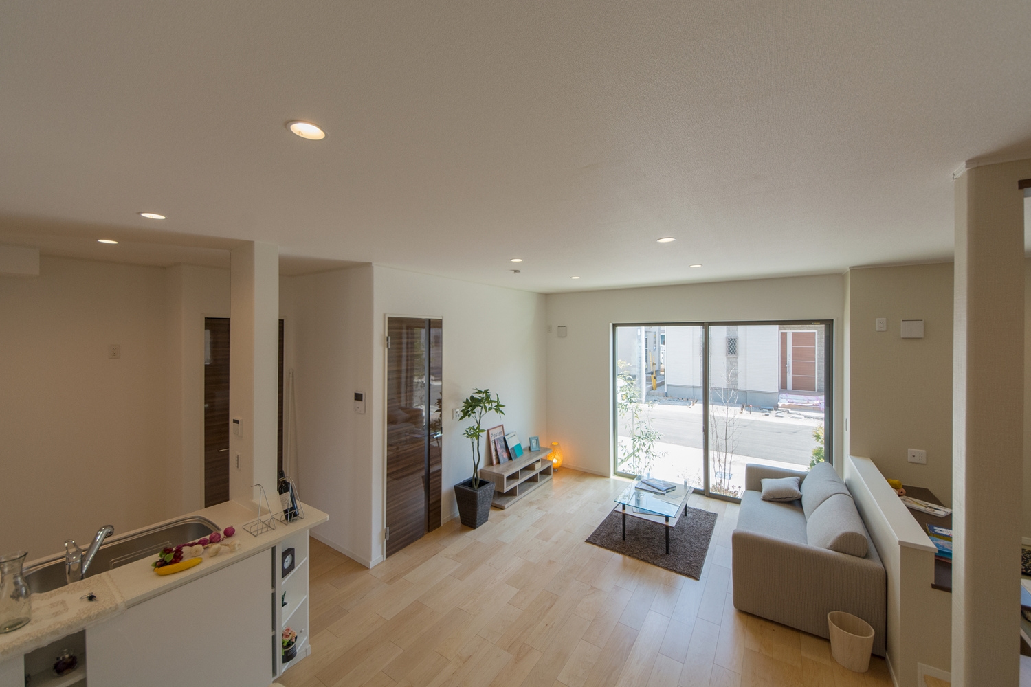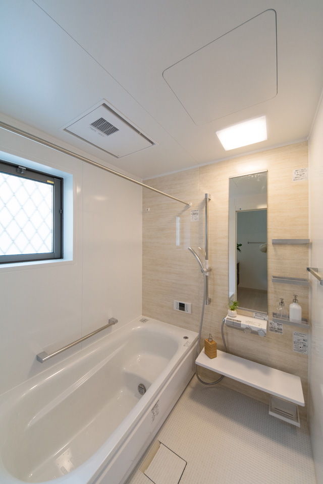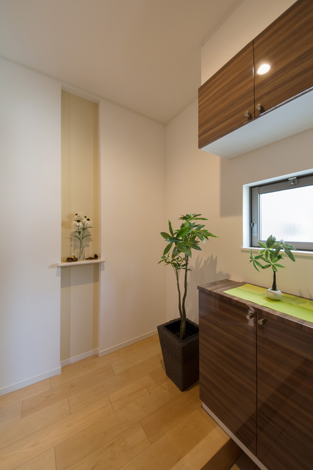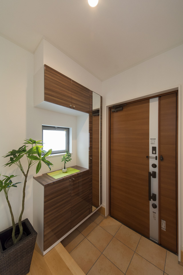 アイボリーを基調に、スティック状にしたオレンジ系色を交互に積み重ねたデザインの外壁は、温かみのある色彩で街並みに溶け込むナチュラルな外観。室内は風と光の心地よい開放的な空間で全体的にナチュラルテイストに仕上がりました。