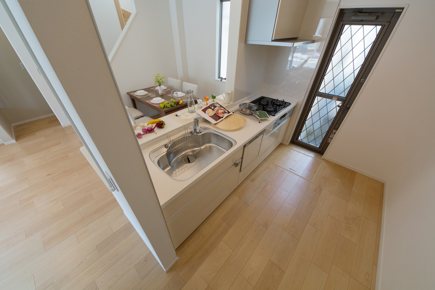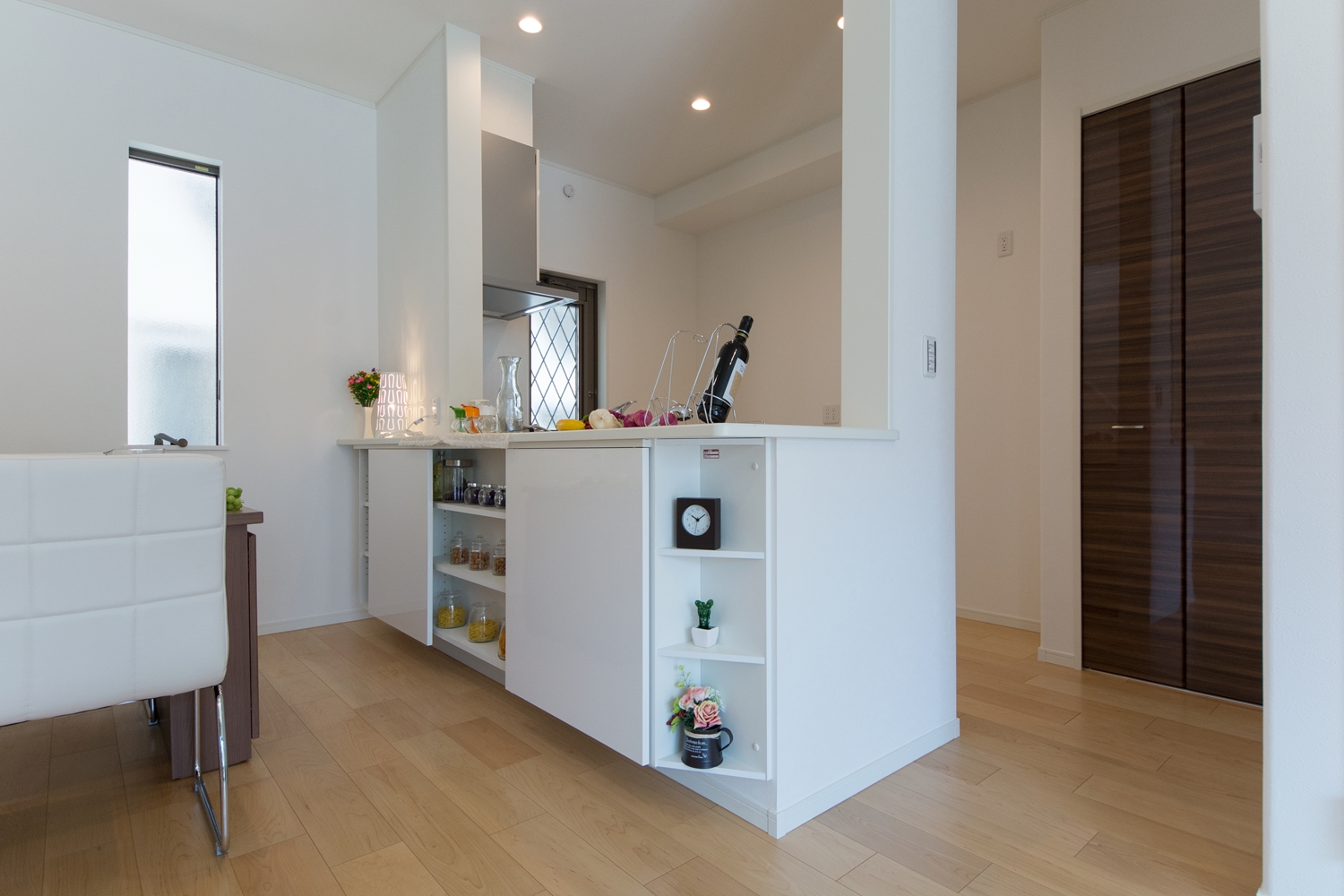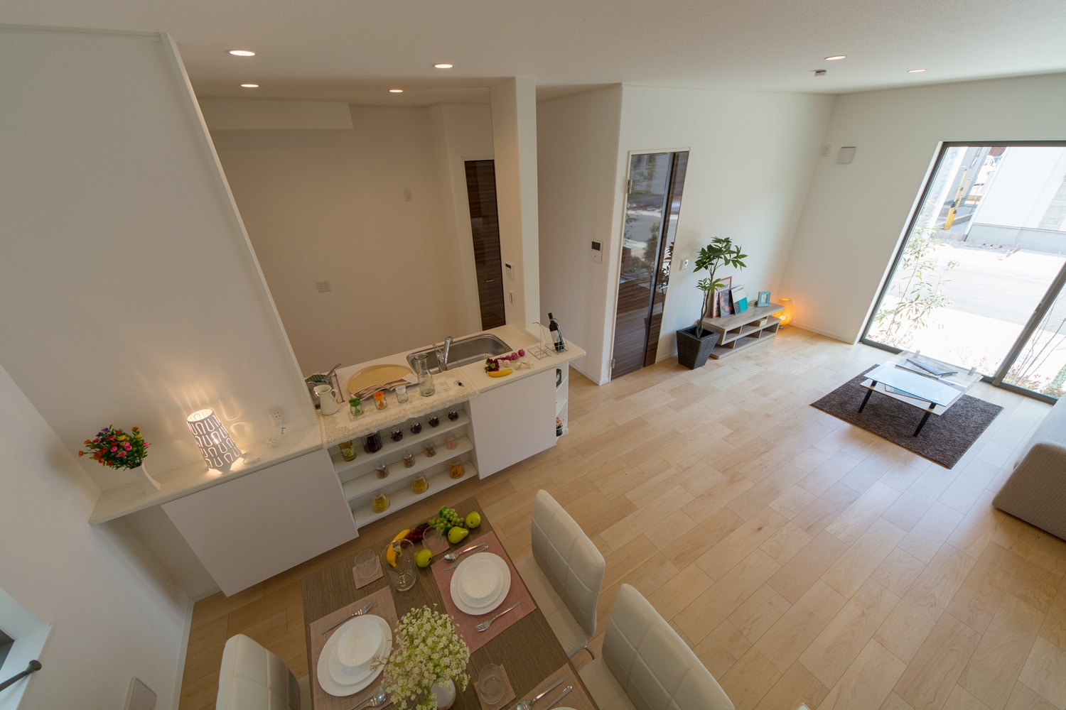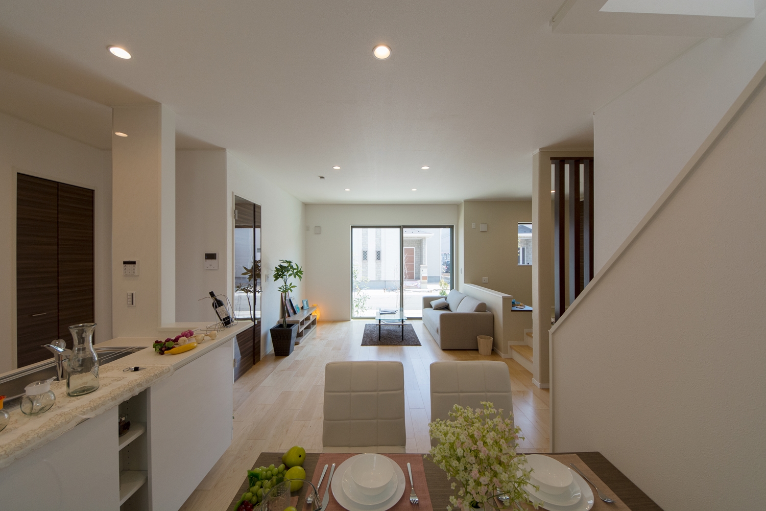 アイボリーを基調に、スティック状にしたオレンジ系色を交互に積み重ねたデザインの外壁は、温かみのある色彩で街並みに溶け込むナチュラルな外観。室内は風と光の心地よい開放的な空間で全体的にナチュラルテイストに仕上がりました。