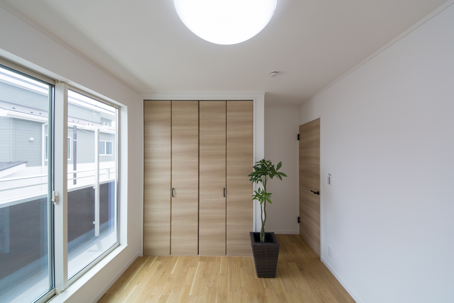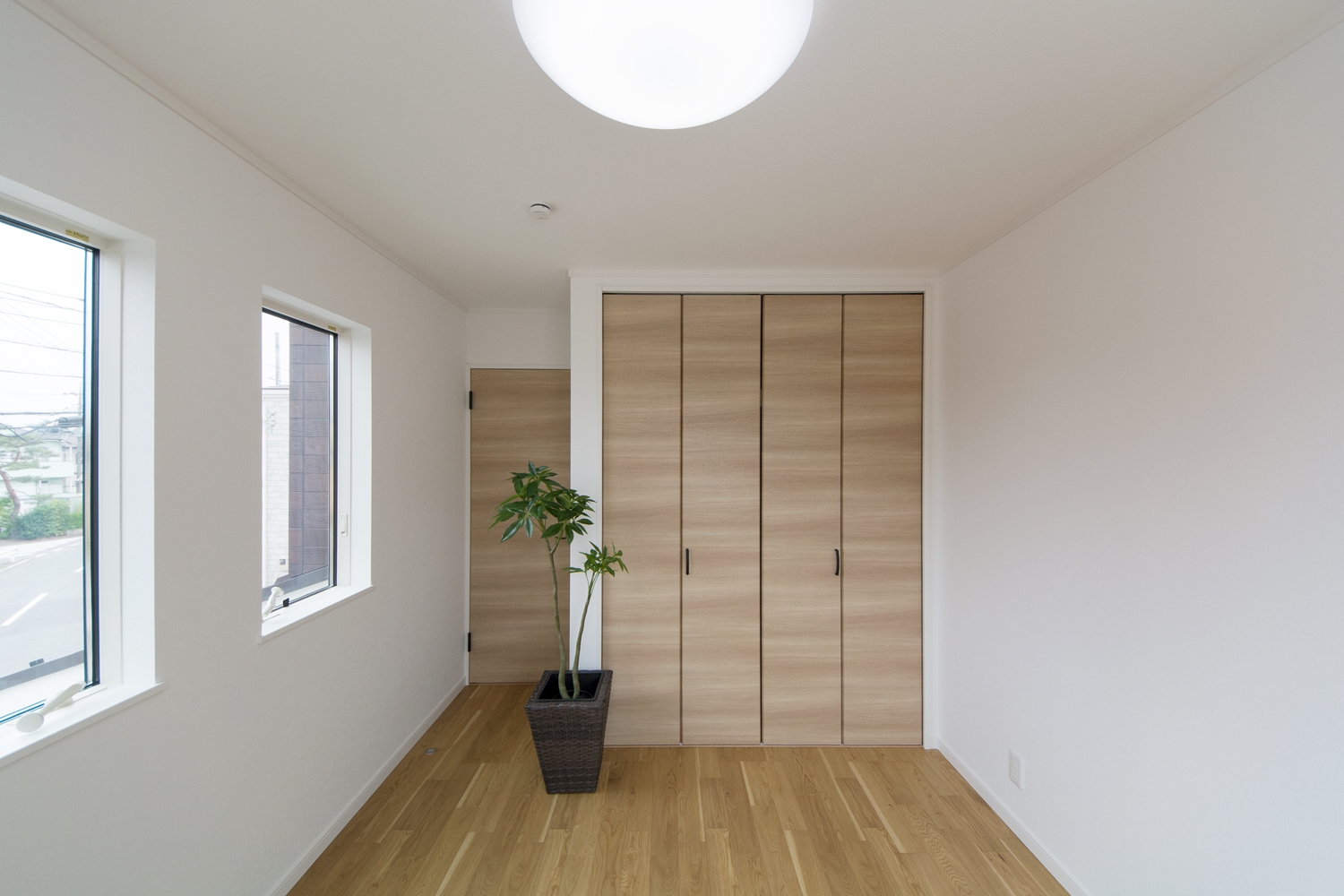 2F洋室。オークのフローリングに白のクロスと建具がナチュラル空間を演出。