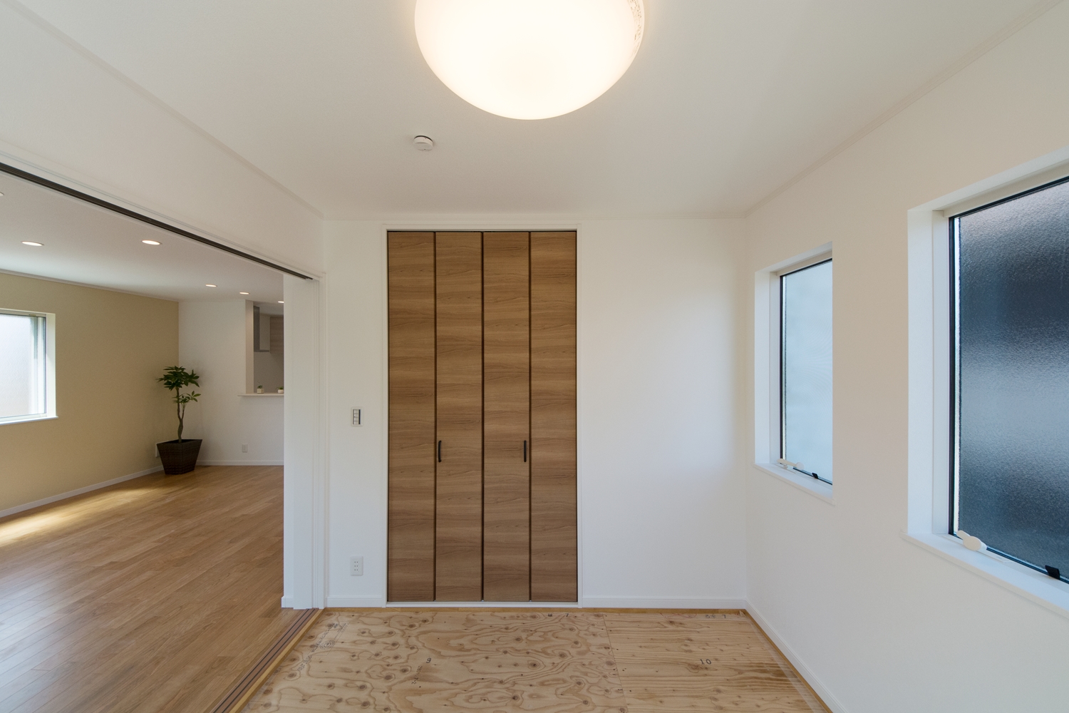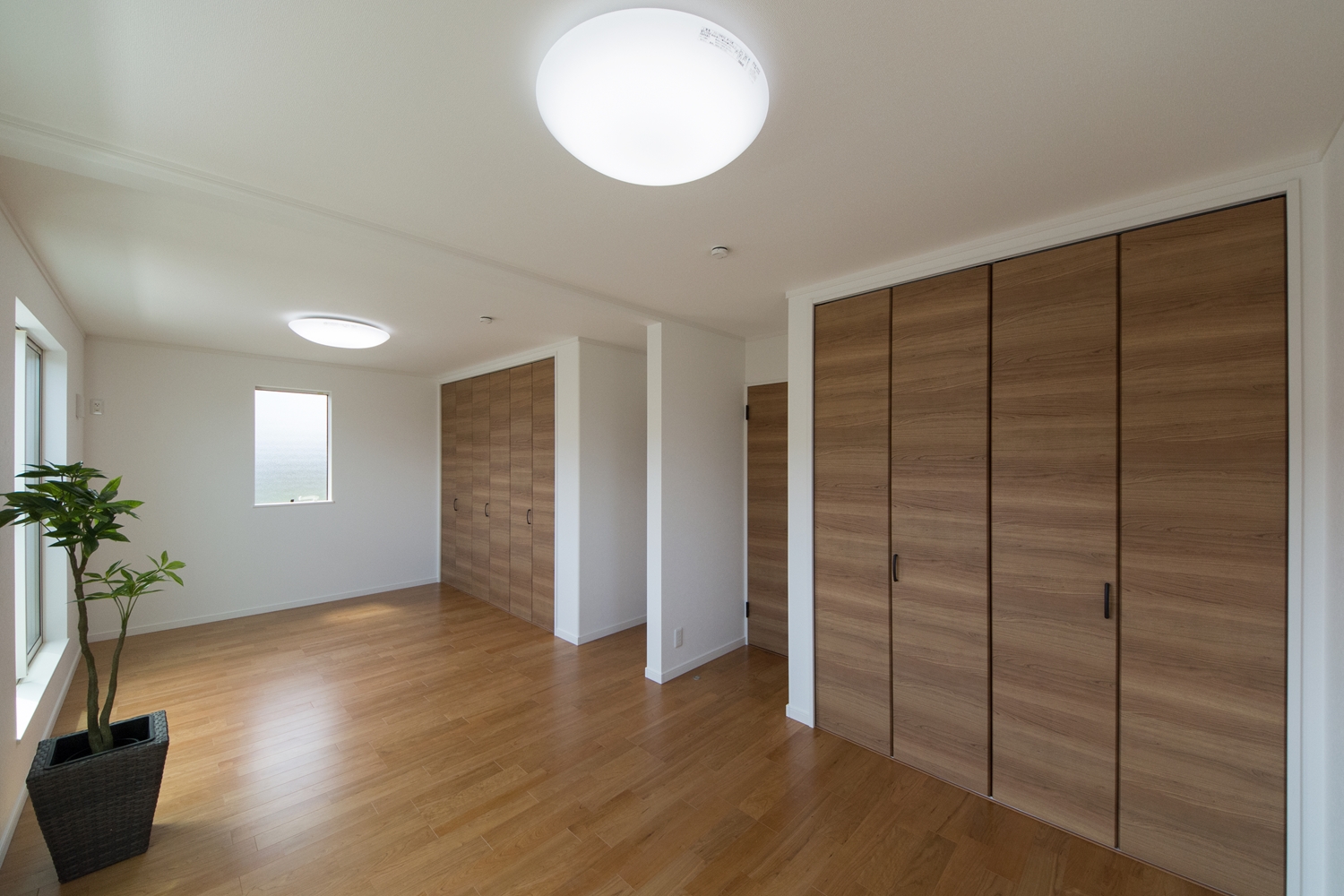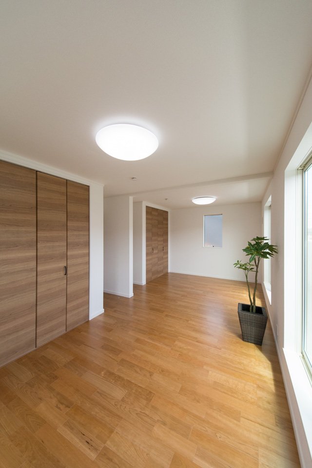 2F洋室。将来的に壁を設けて仕切れるのでご家族の成長に合わせてフレキシブルにご利用できます。