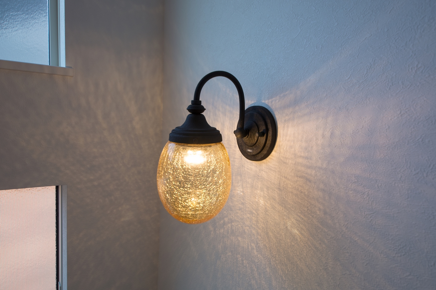アンバー色とヒビ入りの表情が重なるノスタルジーなあかりのお洒落なブラケットライト