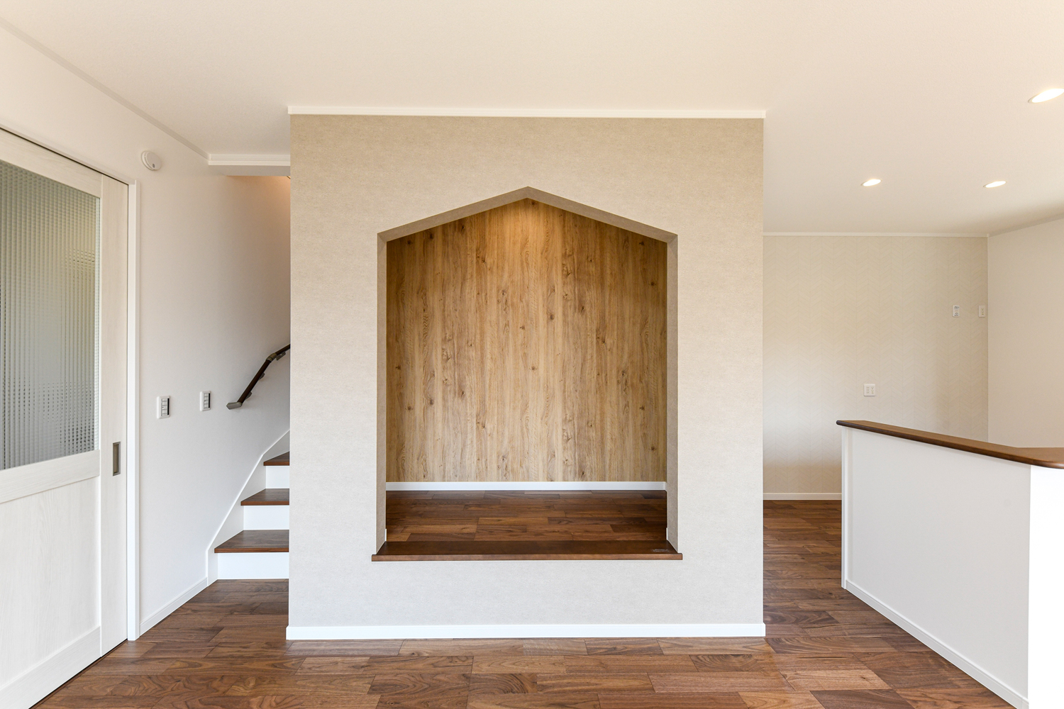 石目・塗り調のアクセントクロスが内装にメリハリを与えています。