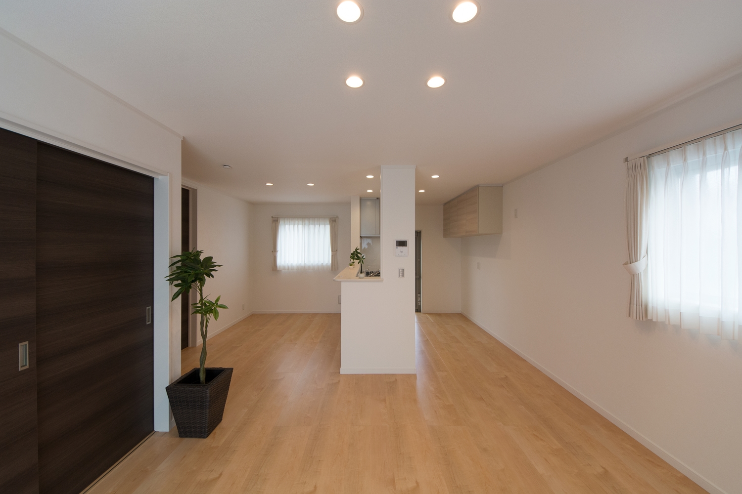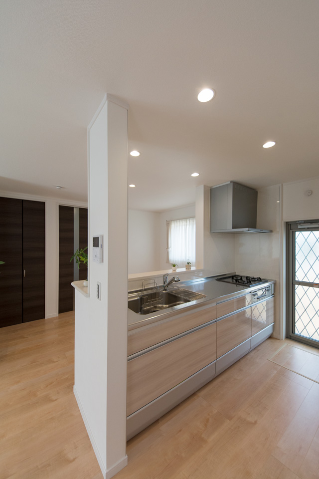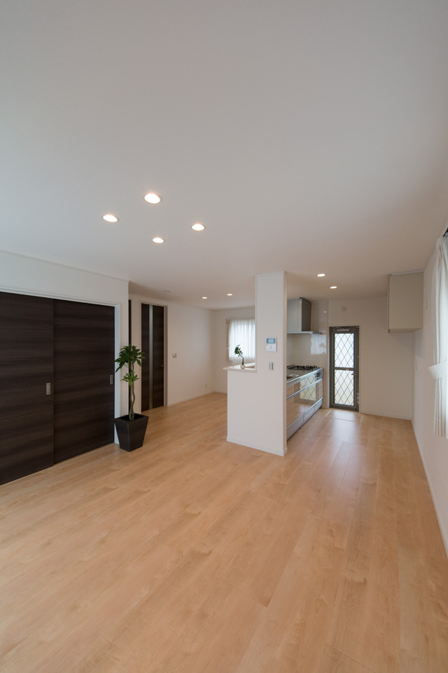 躍動感あるスモーキーブラックの外壁。スタイリッシュ&モダンな佇まいの外観は、陽の当たりや見え方で、グレーや茶色っぽく見え、様々な表情を楽しむことができます。LDKはペットにもやさしいフローリングを採用し、すべりにくく歩行も快適です。ペットと共に暮らしを楽しむこだわりの住まいが完成しました。