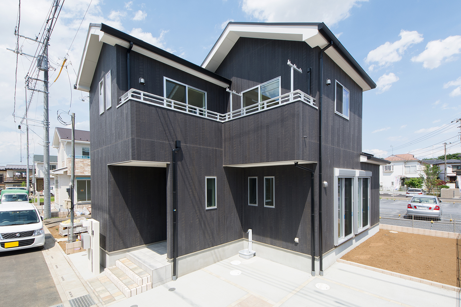 躍動感あるスモーキーブラックの外観 ペットと共に暮らしを楽しむ住まい