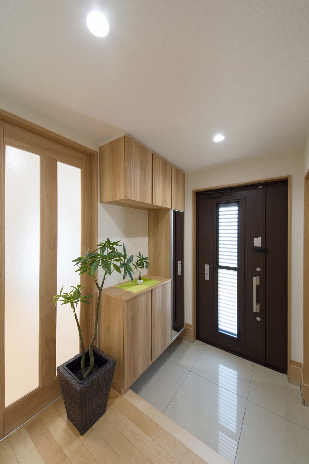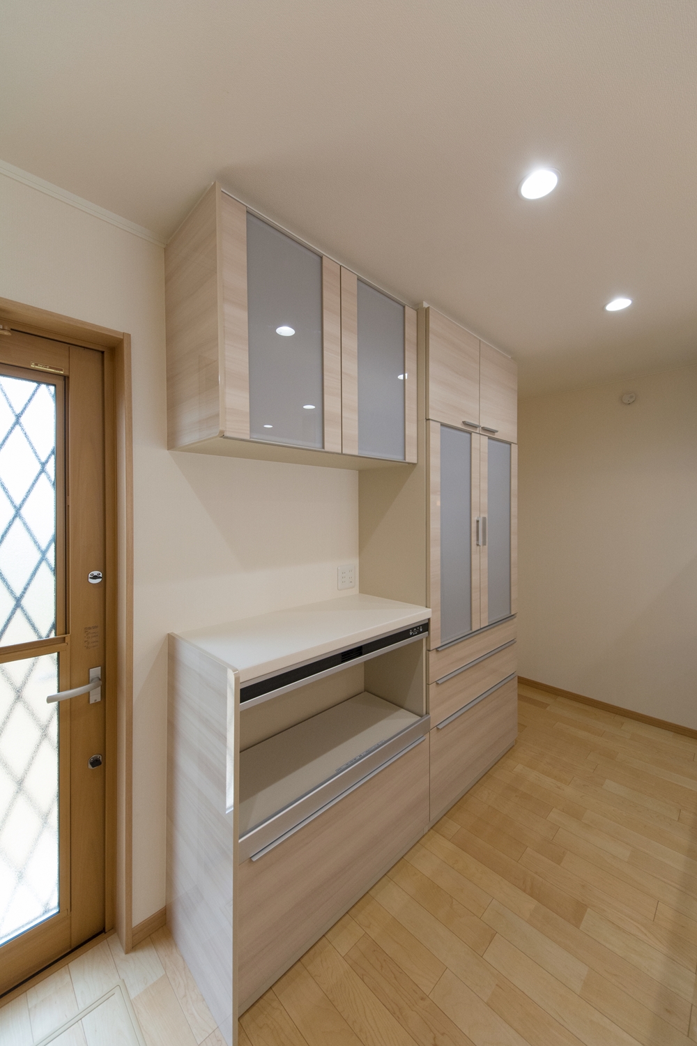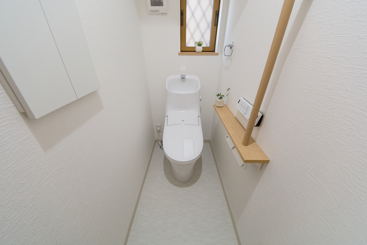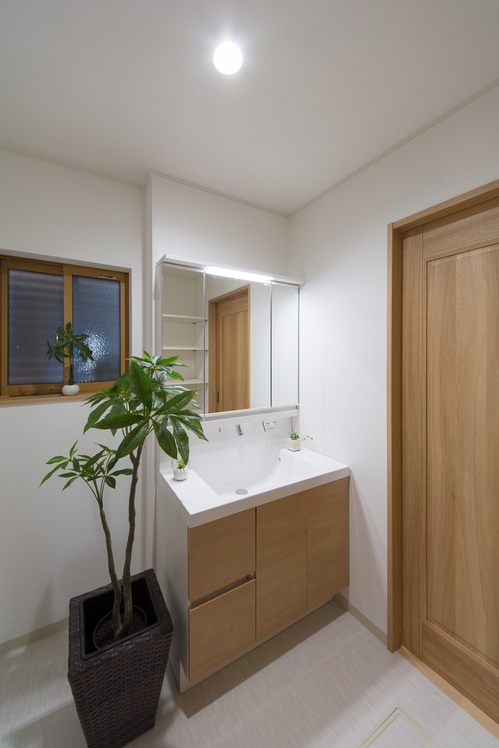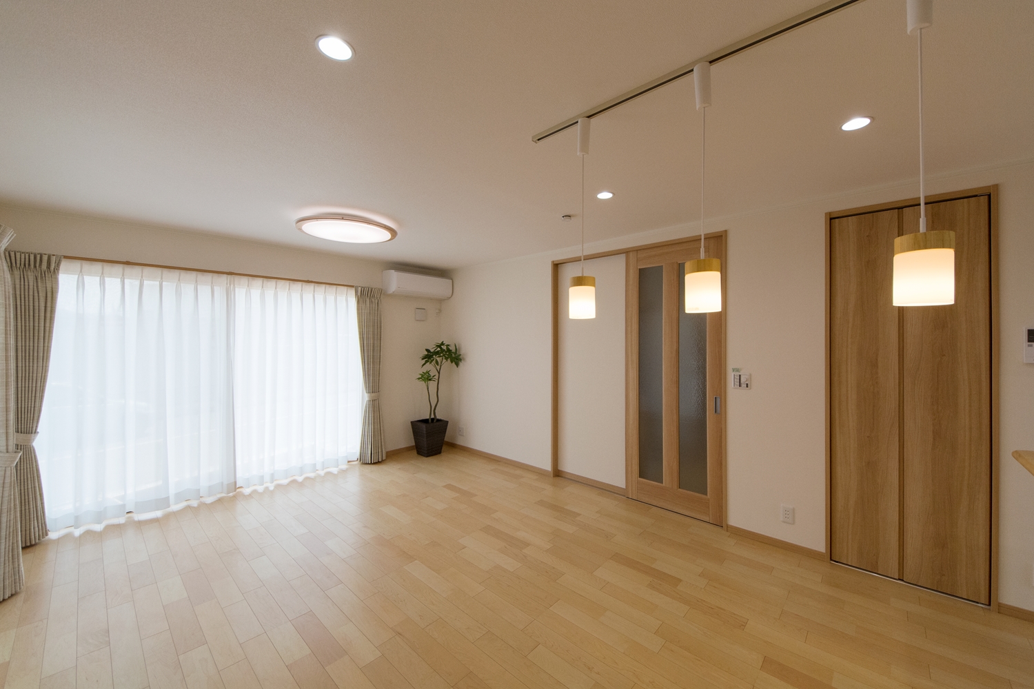 美しい屋根の傾斜が印象的な一体感のあるデザイン。理容室と住居を左右に分けた、見た目も機能性も融合した、店舗併用住宅が完成しました。内装は木のやさしい風合いを感じる、穏やかで心地のよい空間。理容室と住居の間は、廊下で繋がっていて行き来する事が可能です。