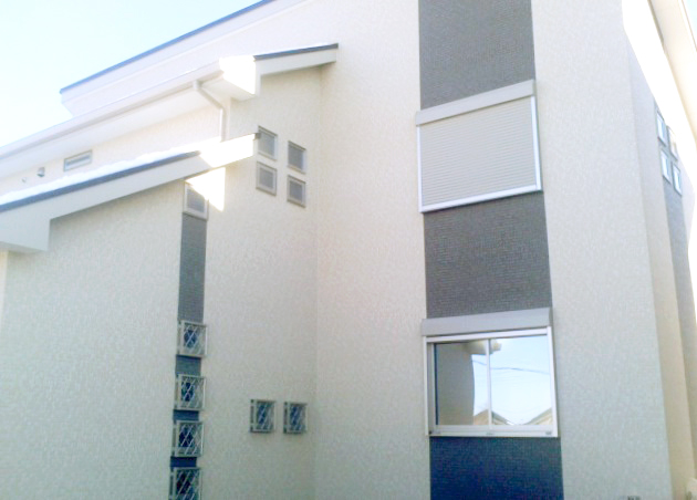 現代的でスタイリッシュな外観の家です。 玄関から中に入れば、一転してナチュラルで優しい雰囲気の内装が使用されており、のんびりとしたくつろぎの時間を演出してくれます。 壁の中に設置された制震システムは、耐震壁を補強して長く続く地震や余震にも効果を発揮します。