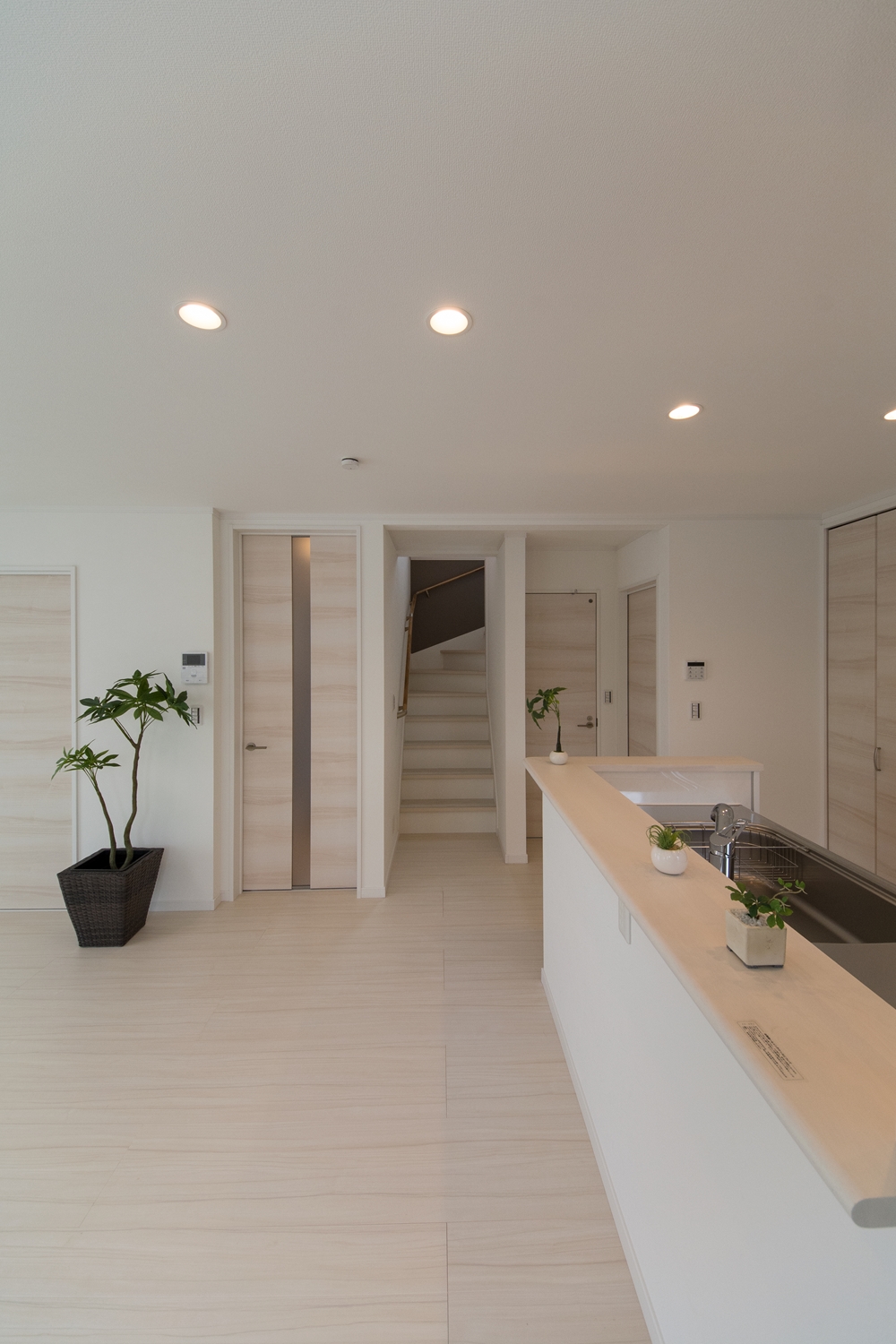 これからの未来の生活に向かって、環境にやさしい太陽光発電を導入。1階は人にもペットにもやさしいフローリングを採用し、すべりにくく、ペットの歩行も快適です。スタイリッシュでモダンなアイデアを沢山とりいれた、人にもペットにも優しいイマドキスタイルな住まいが完成しました。