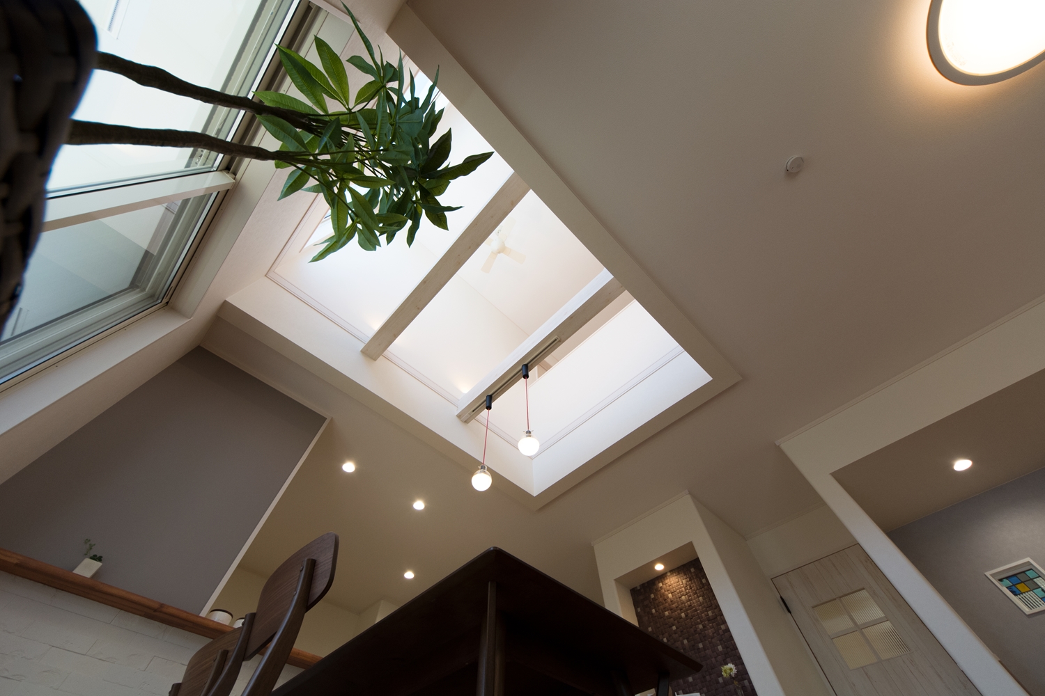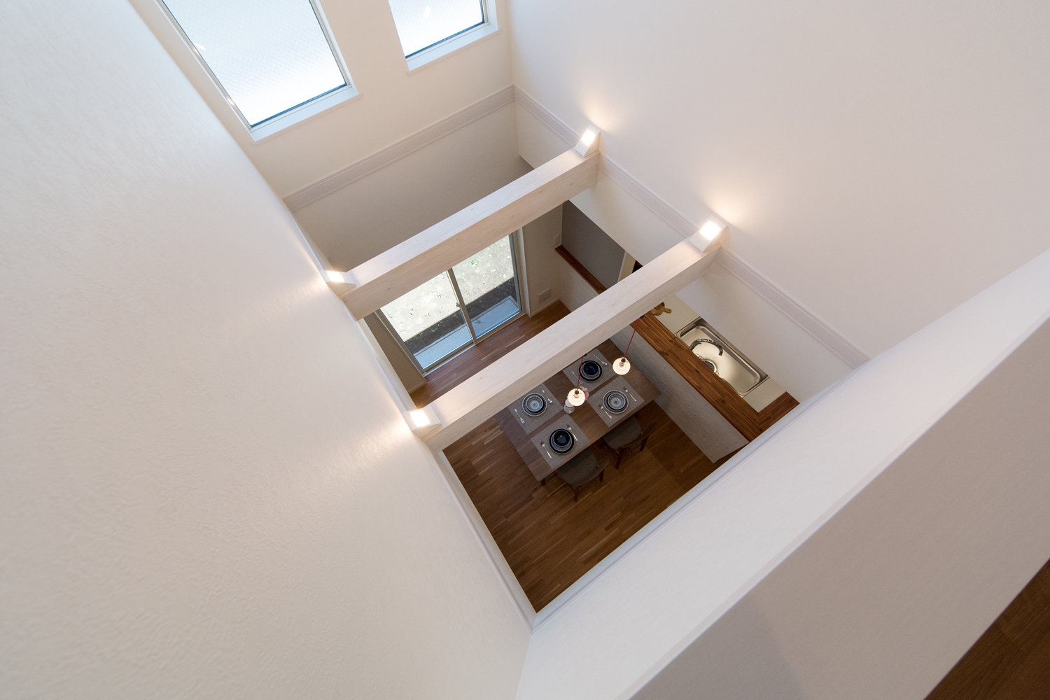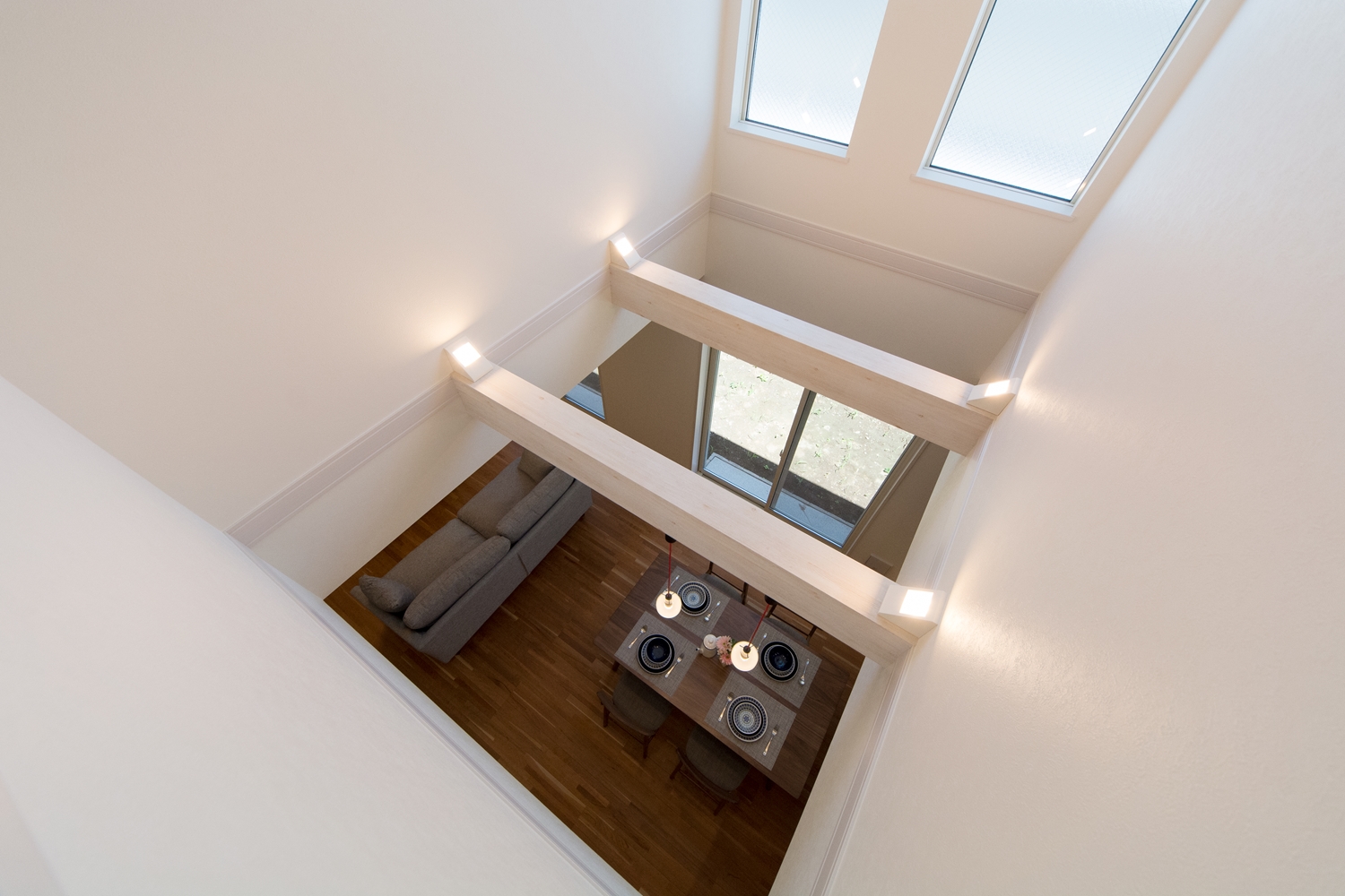 吹き抜けをつくることによってより一層リビングが明るくなり、太陽の光を感じていただけます。
