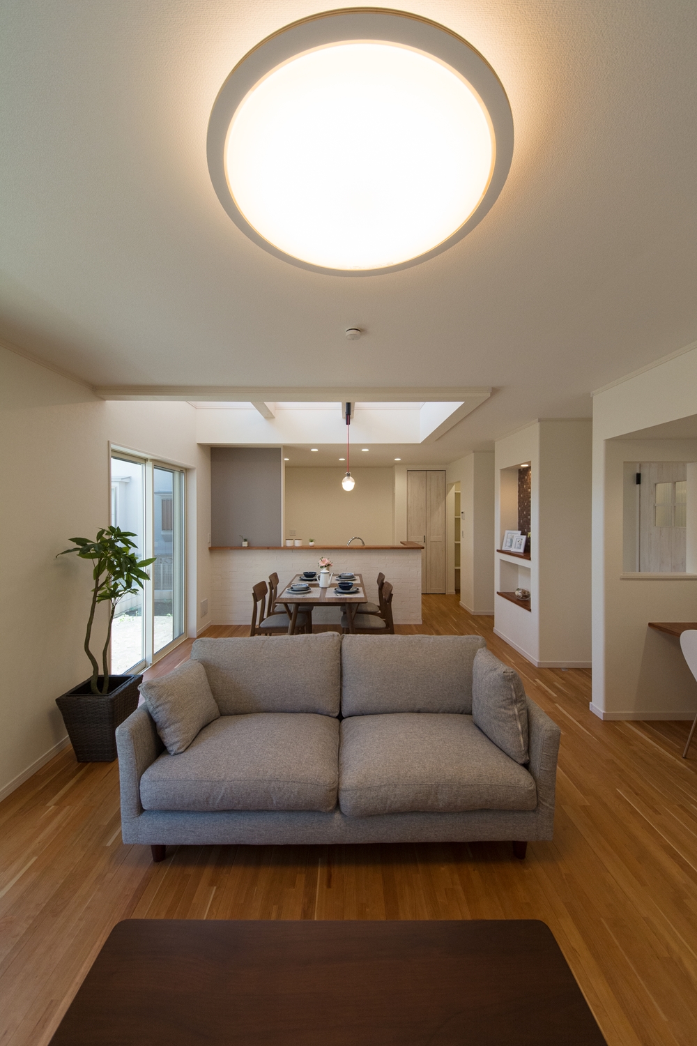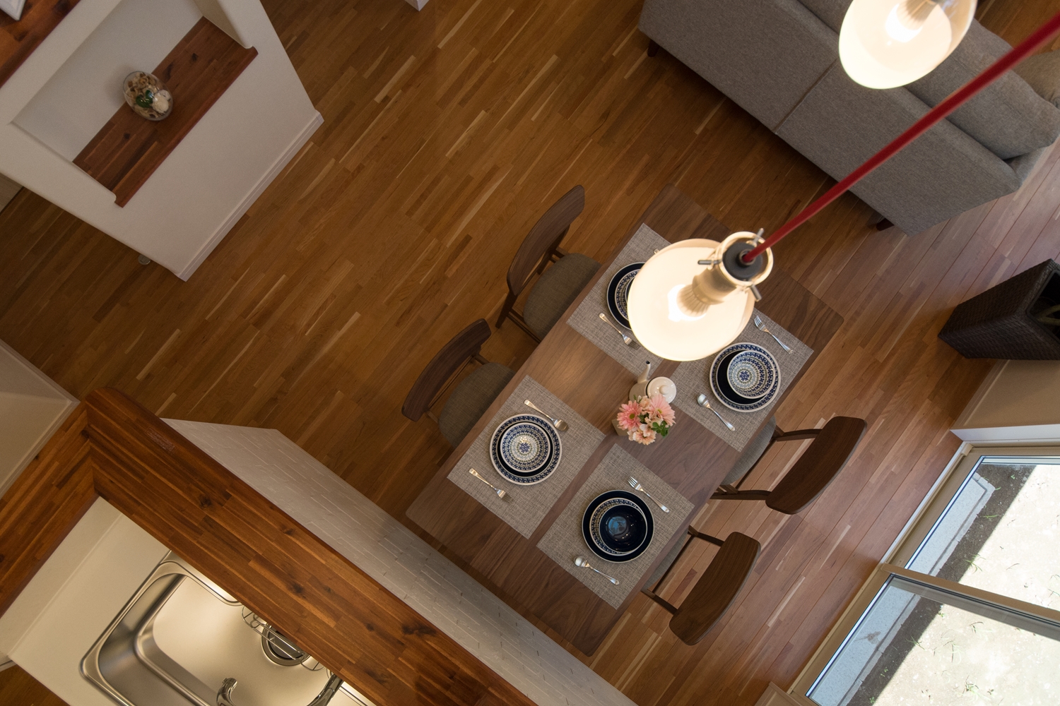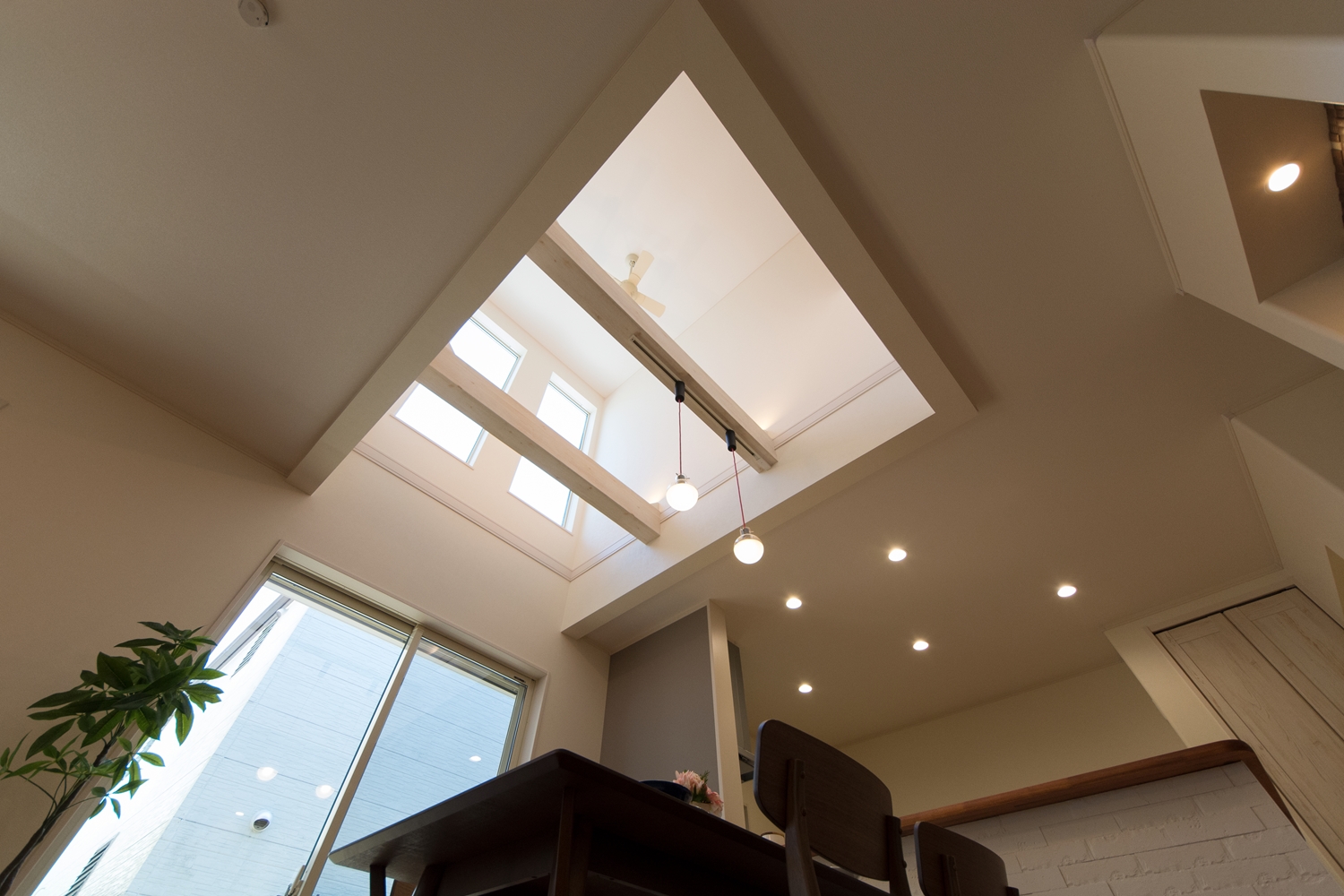 吹き抜けをつくることによってより一層リビングが明るくなり、太陽の光を感じていただけます。