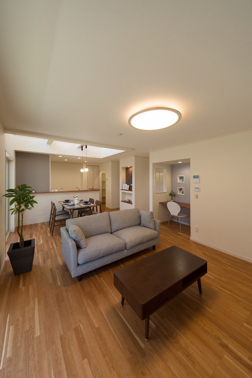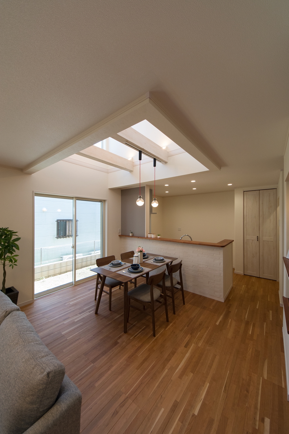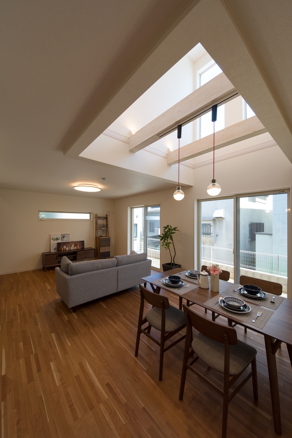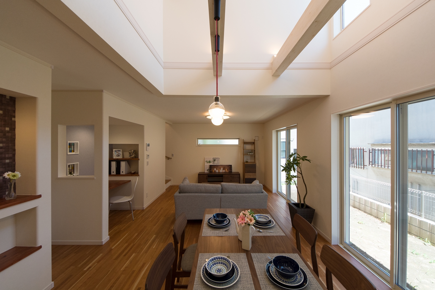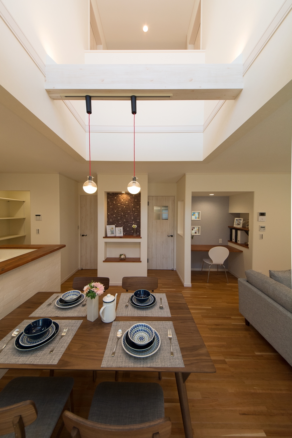 家族の集うLDKには、縦の開放感と優しい自然光に満たされる吹き抜け設計。