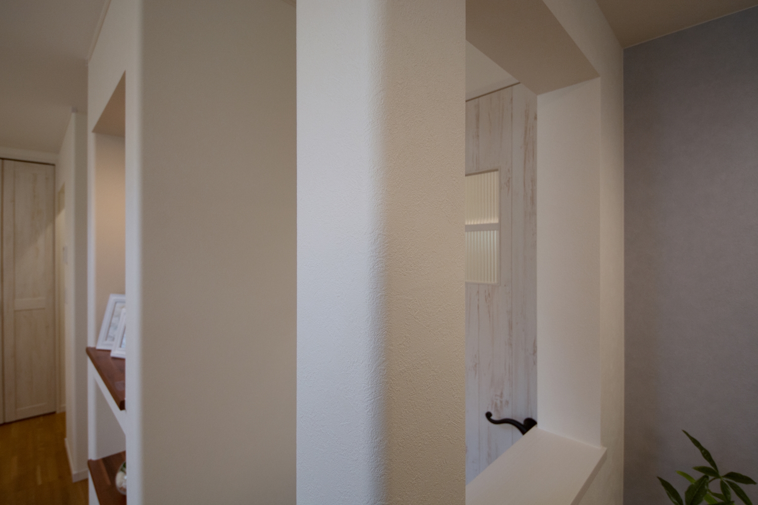 柱の角はブルノーズ仕上げを施し、見た目の柔らかさとともに、小さなお子様にも安心な設計に。
