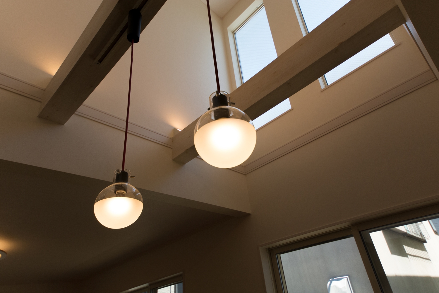 ペンダントライトの柔らかな光が、空間にあたたかみをプラス。