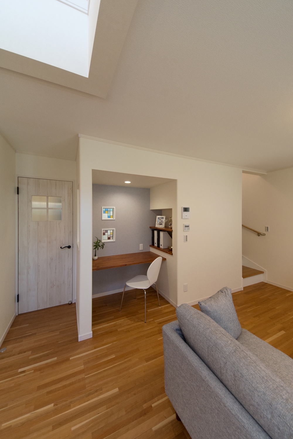 お子様の勉強スペースや趣味のスペースとして活用ができるデスクカウンター。ラベンダー色のクロスが気持ちを落ち着かせる効果も。