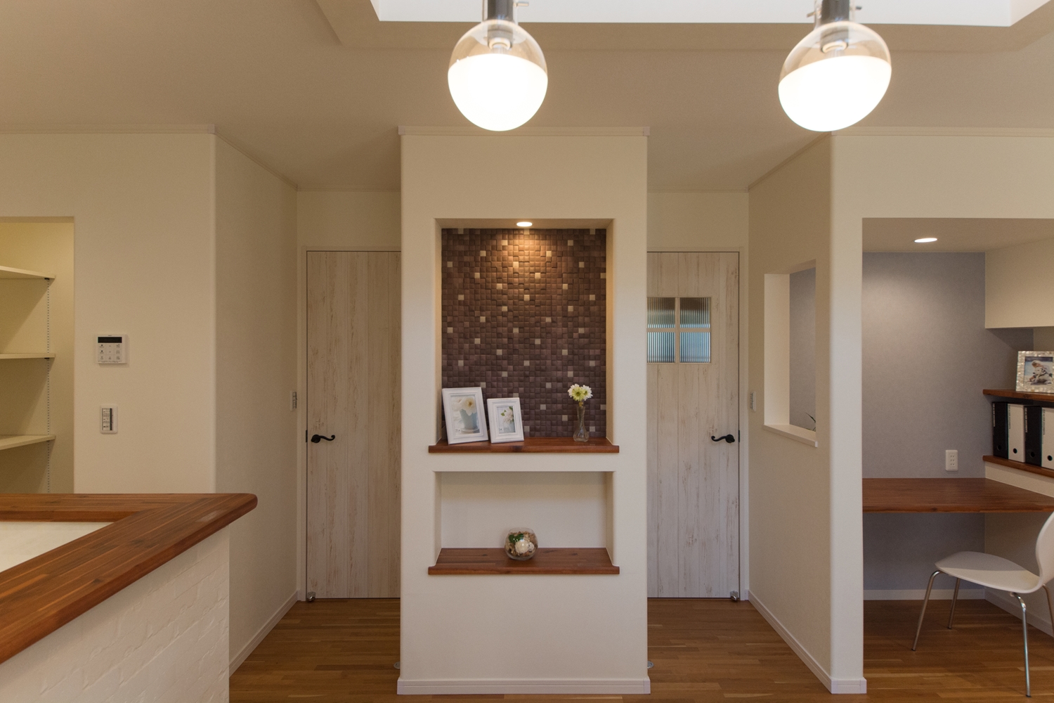空気を美しく整えるインテリア壁材「エコカラット」をあしらったニッチカウンター。