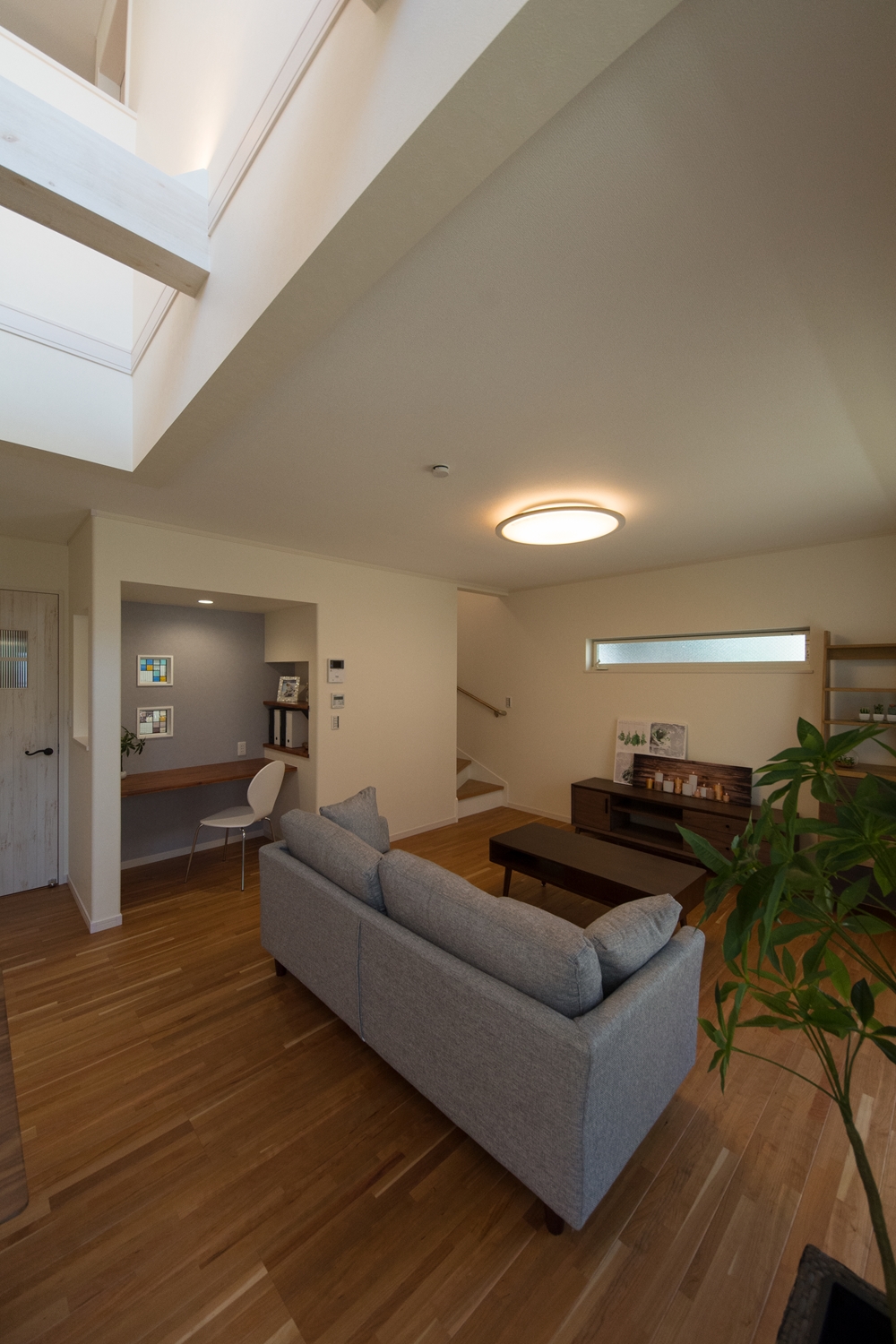 吹き抜けを採用した開放的で光に溢れた心地よい時が流れるリビングです。