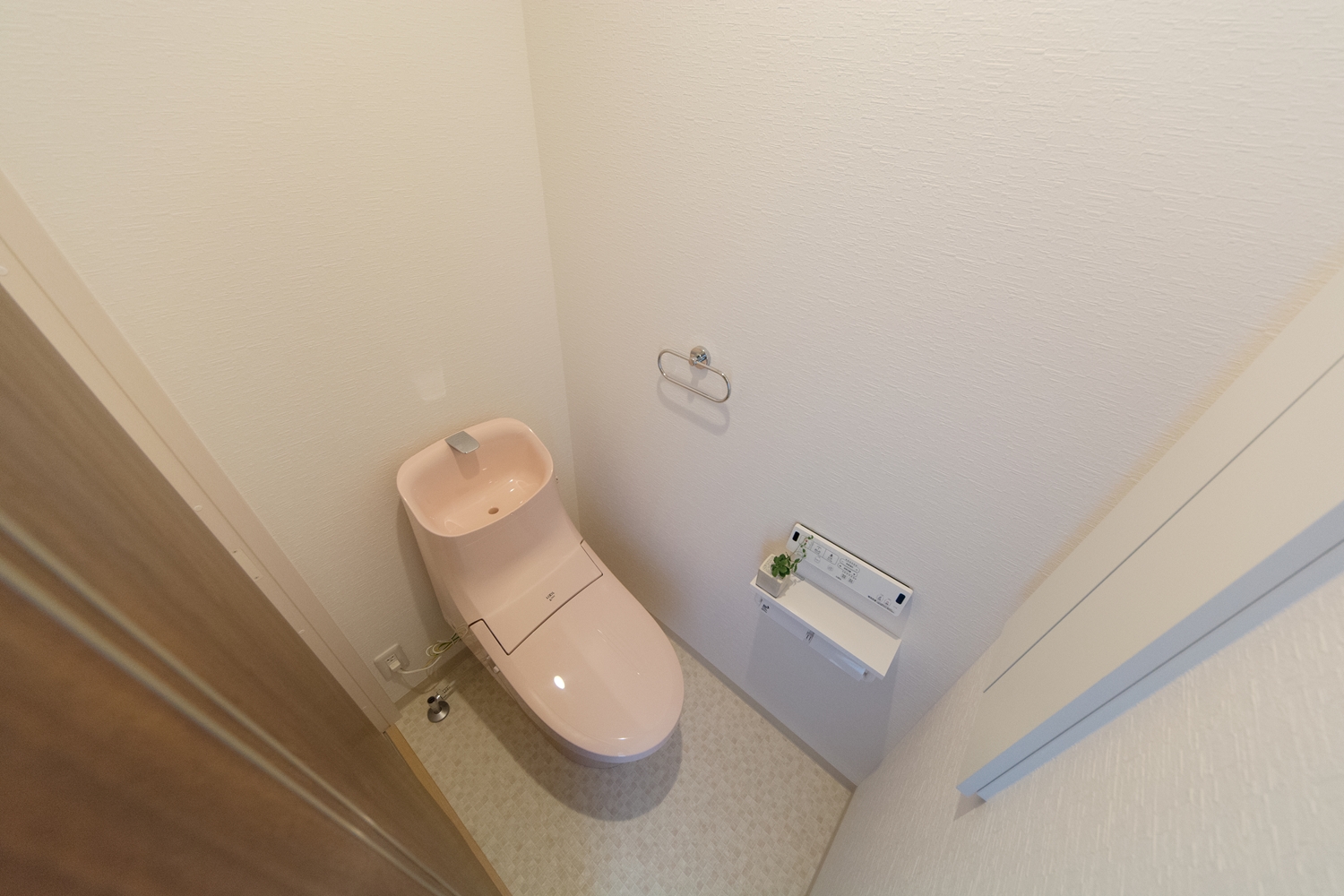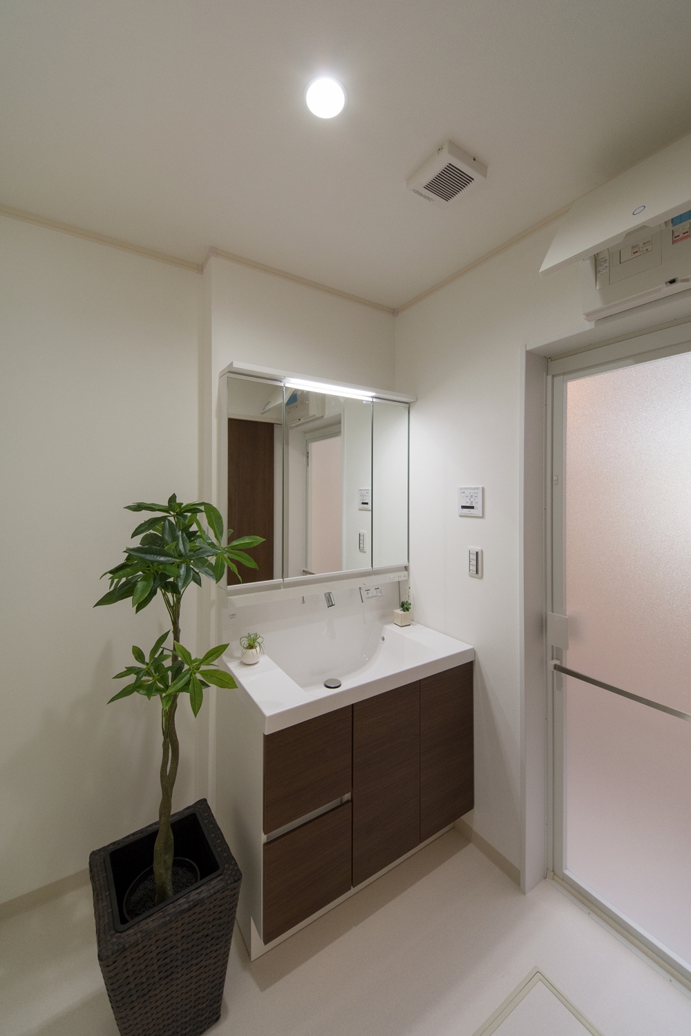 壁とドアのオーナメントが個性を演出 白・桃色・グリーンが彩るナチュラルモダン