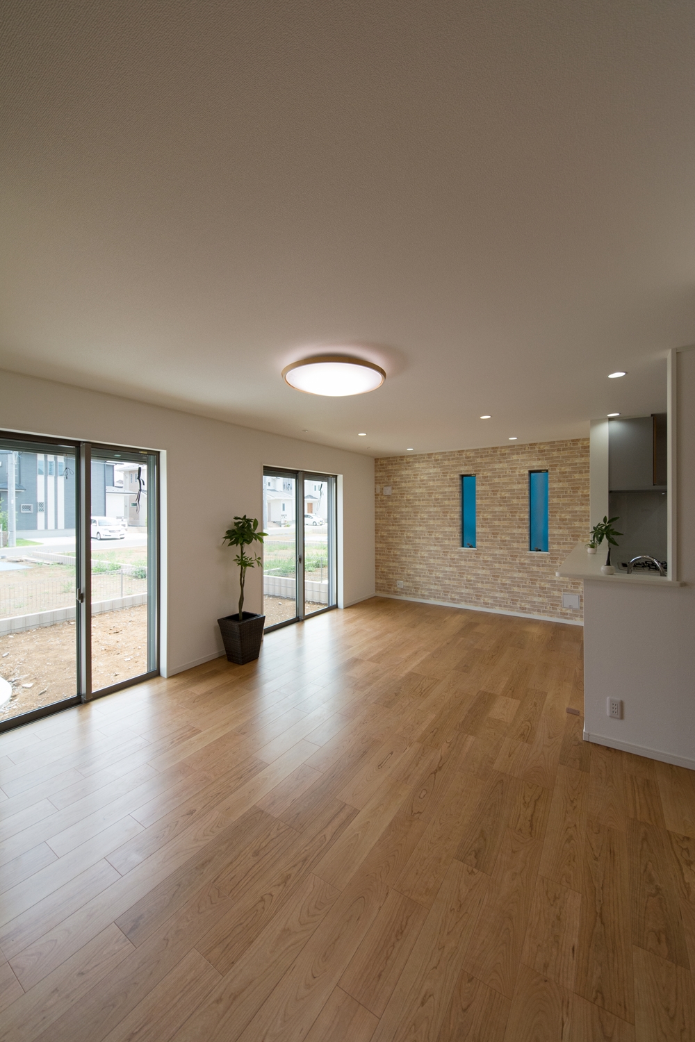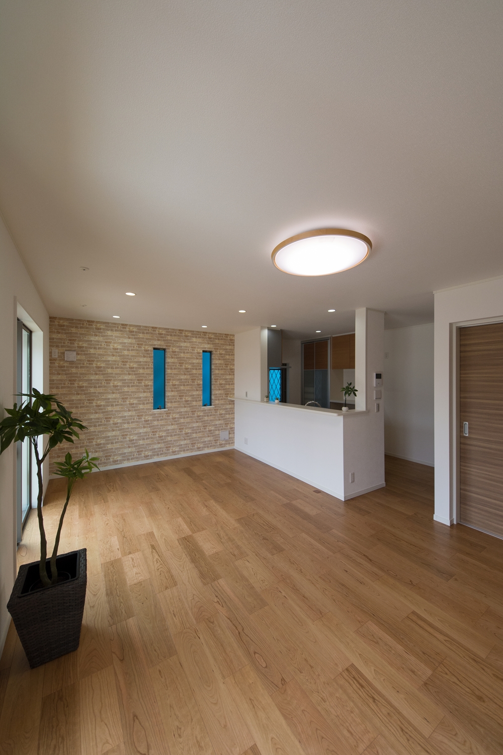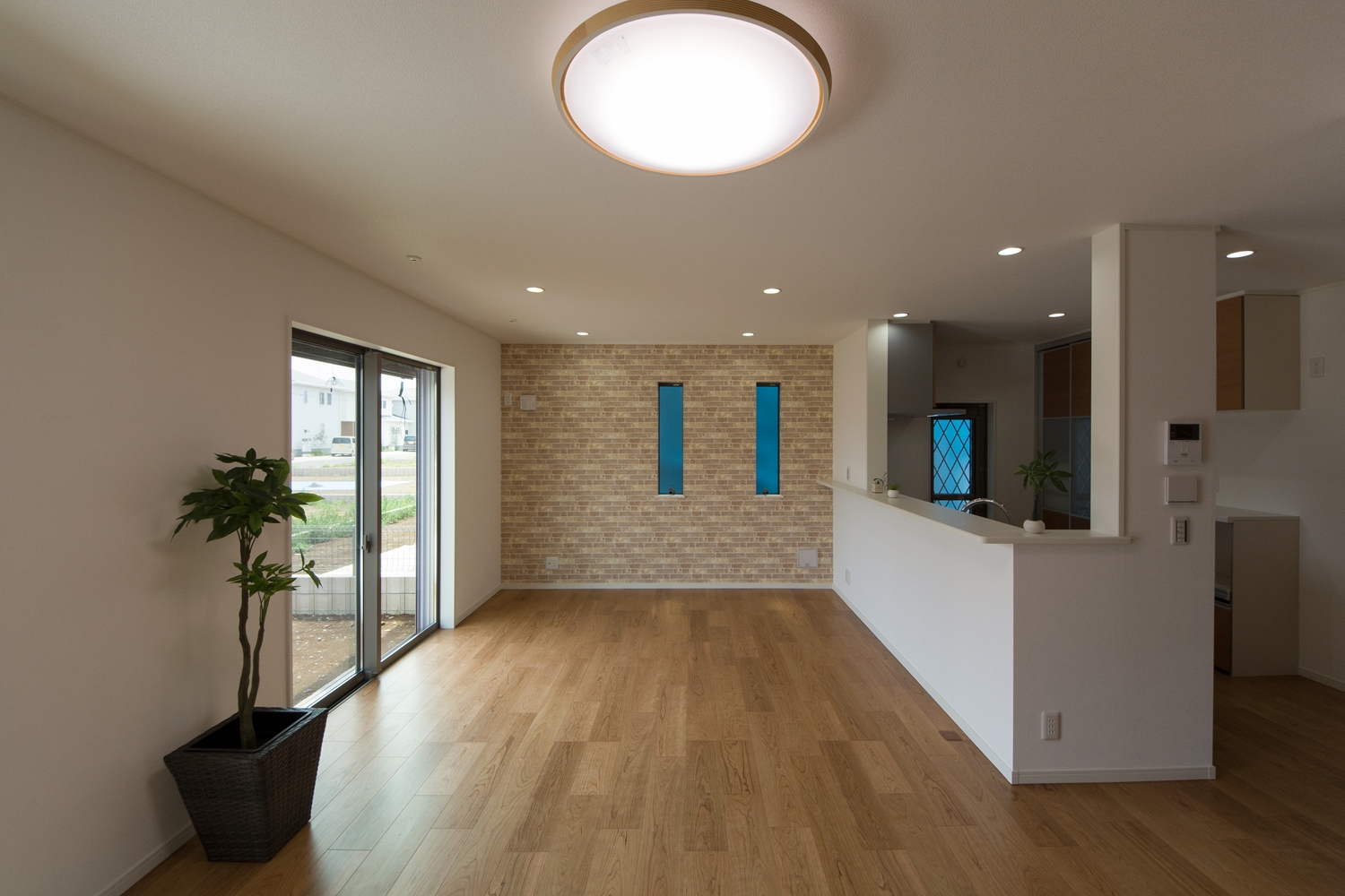 レンガ調のアクセントクロスが温かみのある空間を演出します。