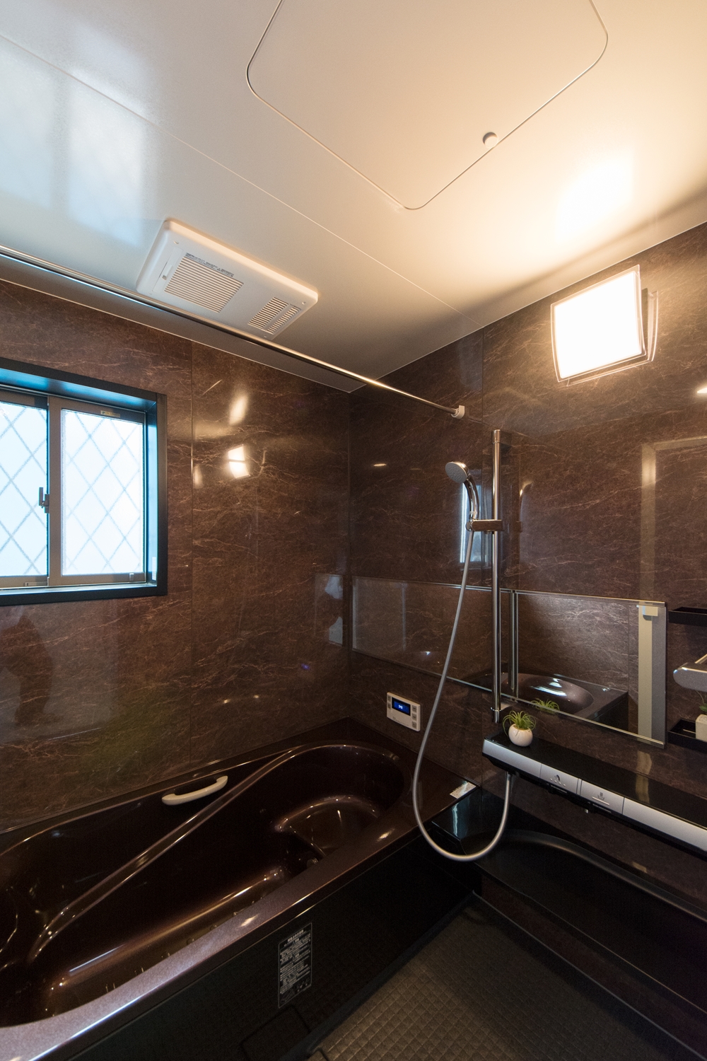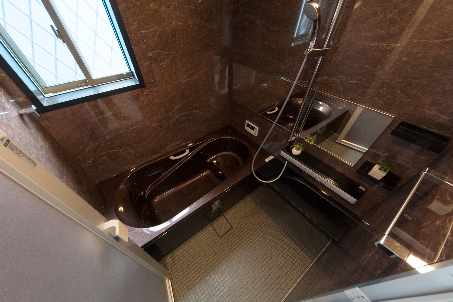 浴槽カラーもアクセントパネルと合わせてブラウン系にしました。
