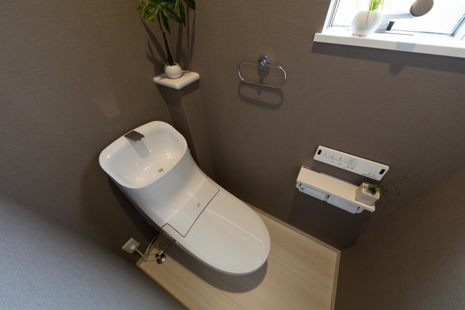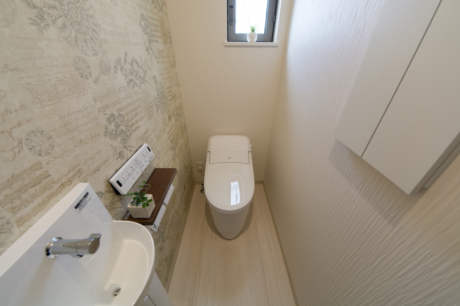 2Fトイレはグレーのクロスで落ち着きのある空間に。