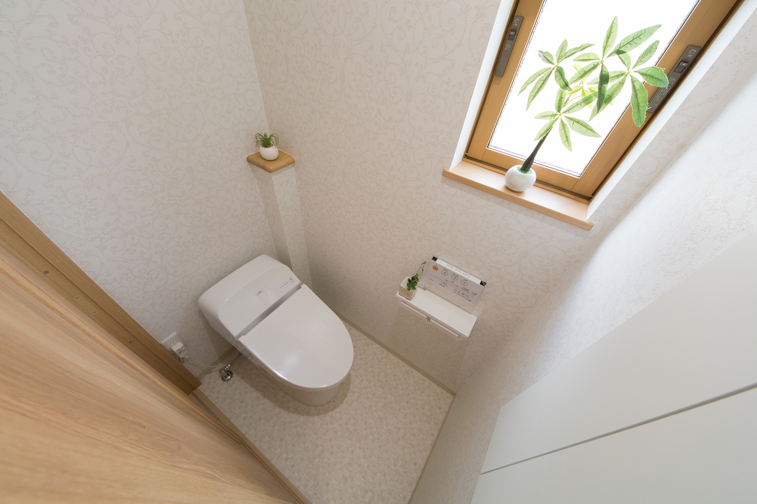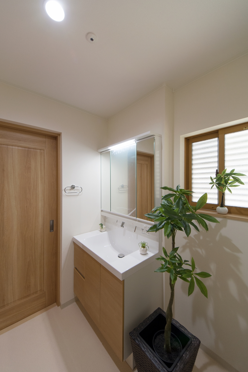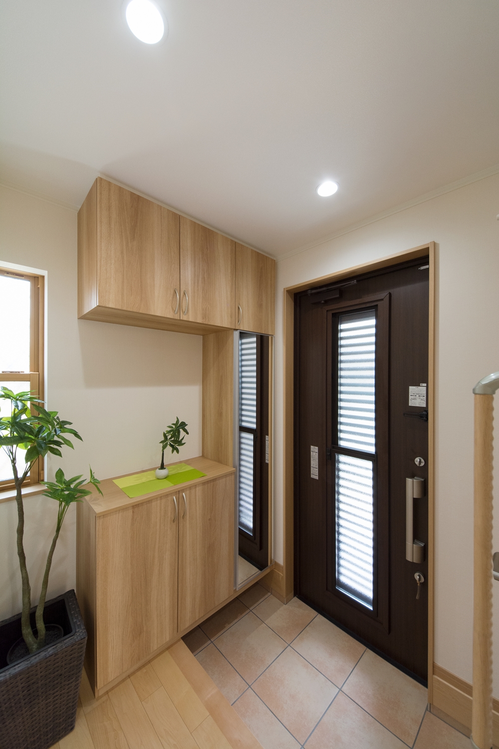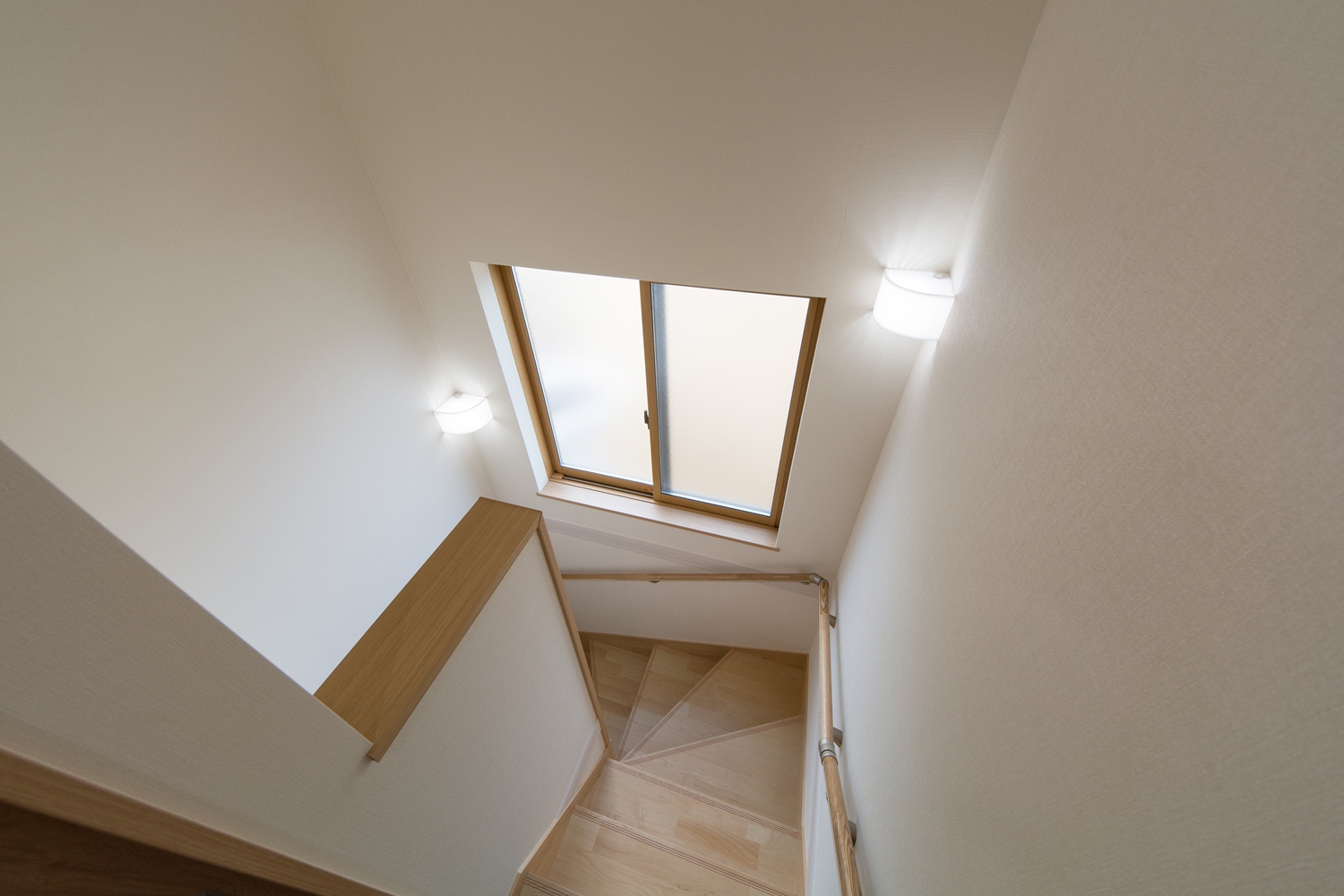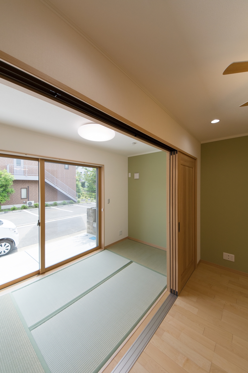 スタイリッシュな形とナチュラルな配色、三角屋根と四角窓が印象的な素敵なデザインの外観に仕上がりました。内装は爽やかなグリーン色のクロスがLDKを彩り、穏やかな空間です。