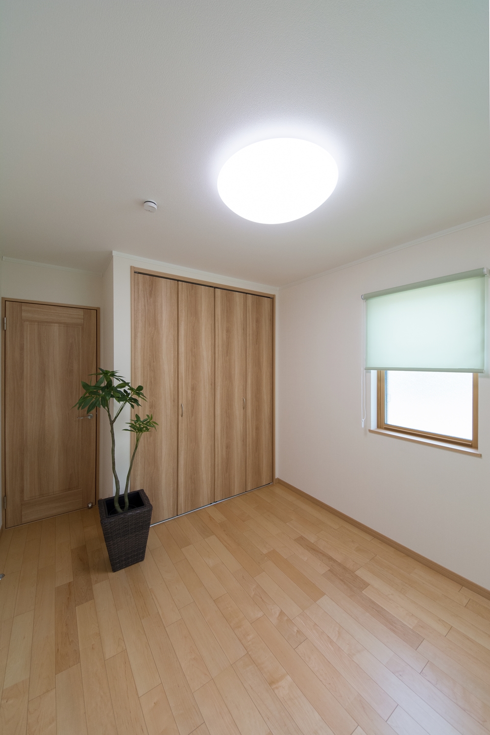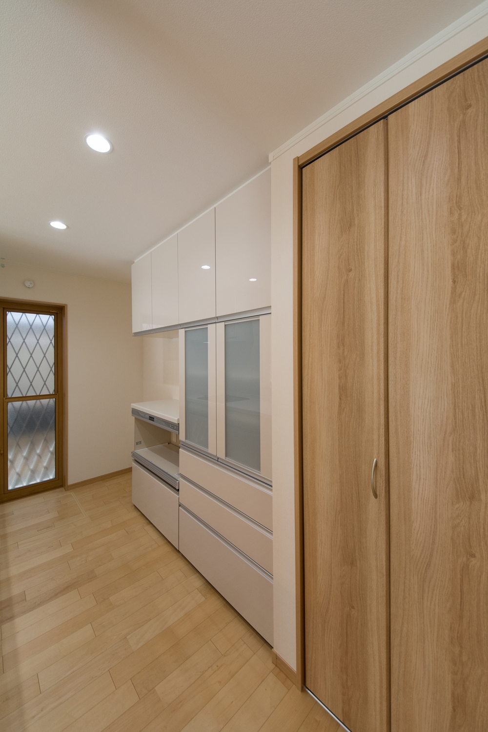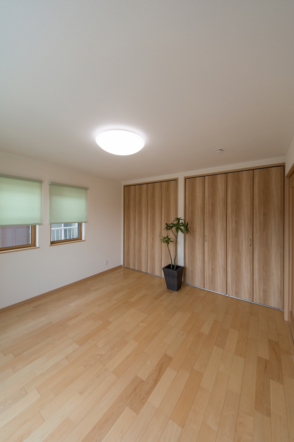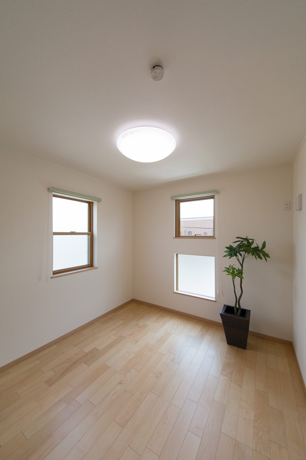 スタイリッシュな形とナチュラルな配色、三角屋根と四角窓が印象的な素敵なデザインの外観に仕上がりました。内装は爽やかなグリーン色のクロスがLDKを彩り、穏やかな空間です。