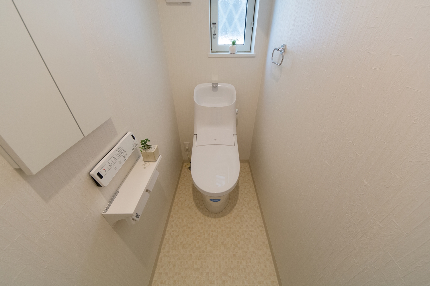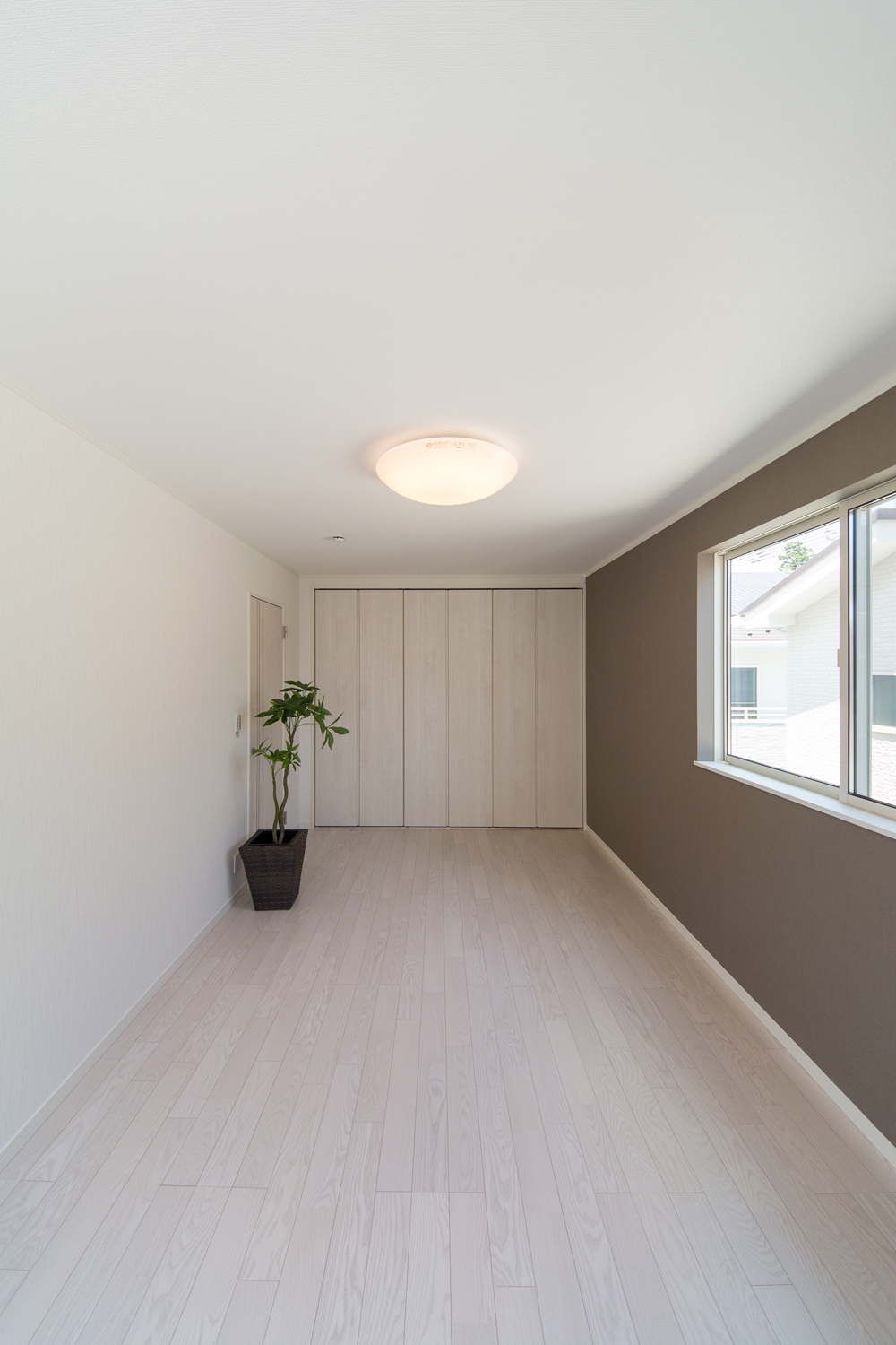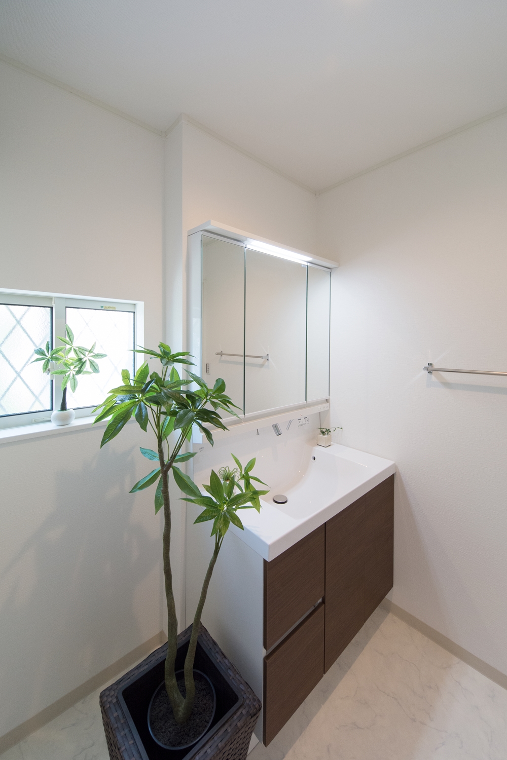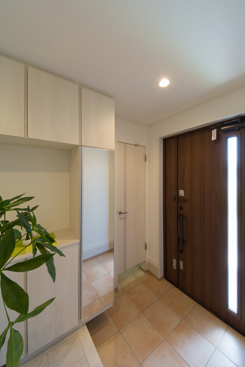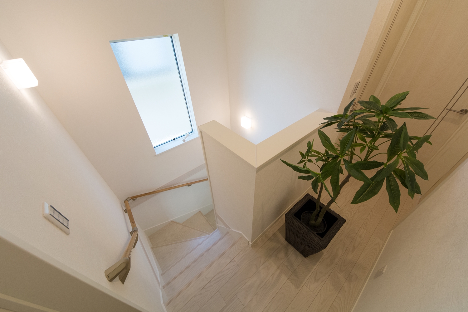 ホワイトをベースにブラウンをアクセントにしたナチュラルなカラーデザインの外観。太陽光発電システムを導入し、わが家で電気を創ります。家族の省エネ意識も高まって、エコが楽しくなります。