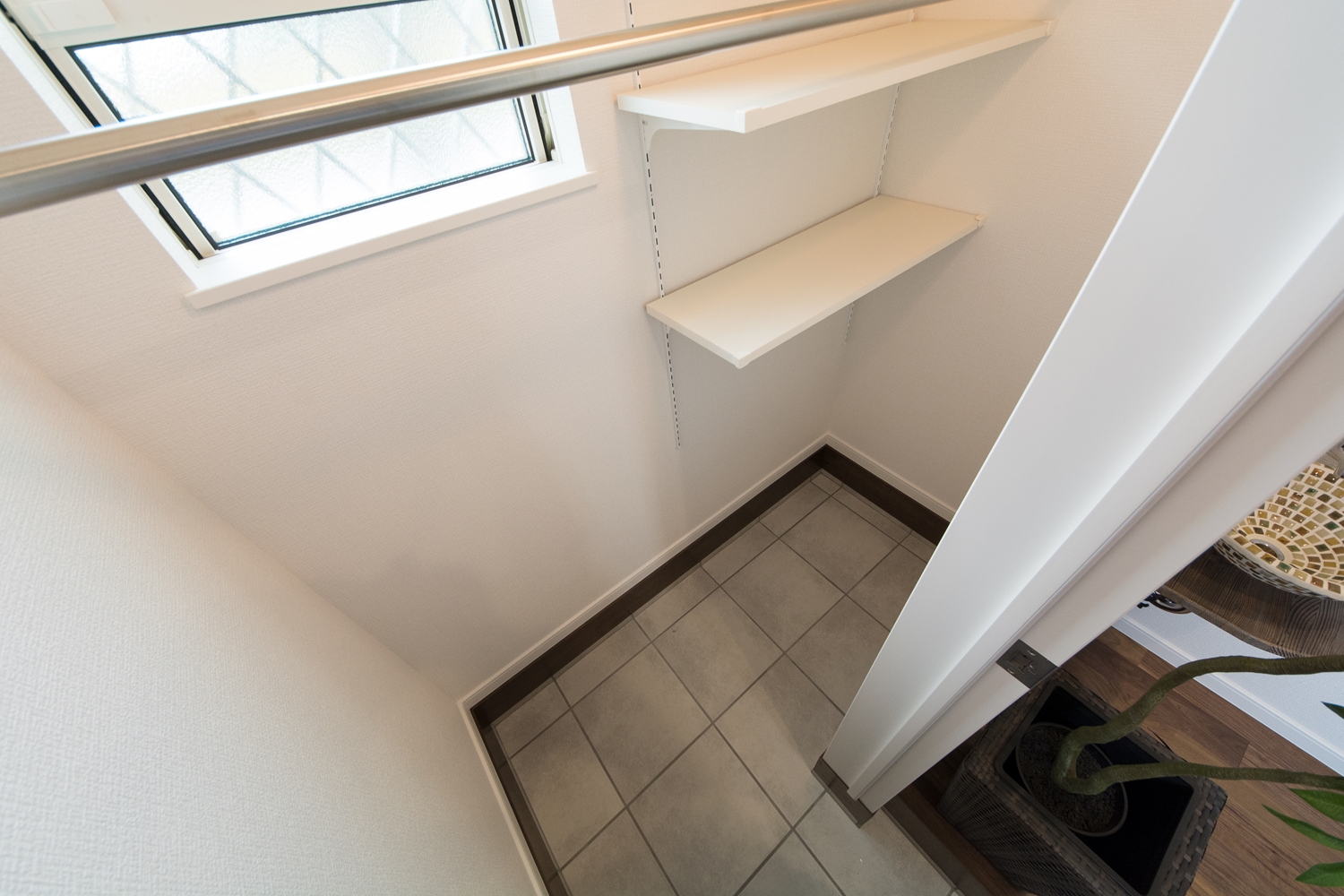 シューズクローク内/ハンガーパイプも取付け、機能性抜群。