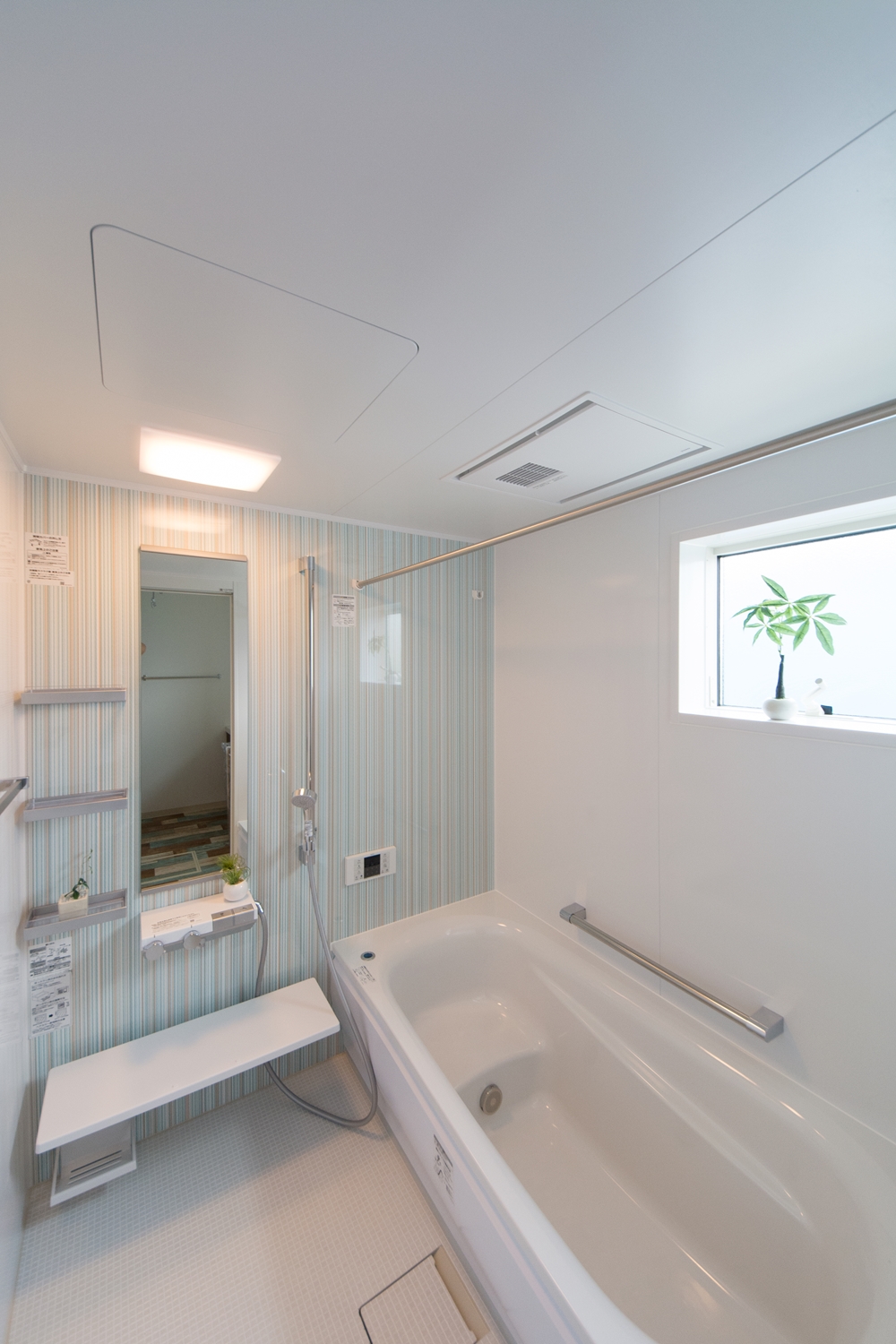 2Fバスルーム/ミントカラーをベースにリズミカルにアレンジした柄のアクセントパネルが爽やかな空間を演出。