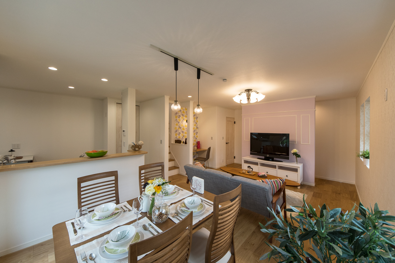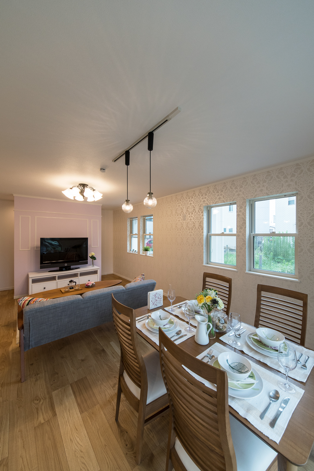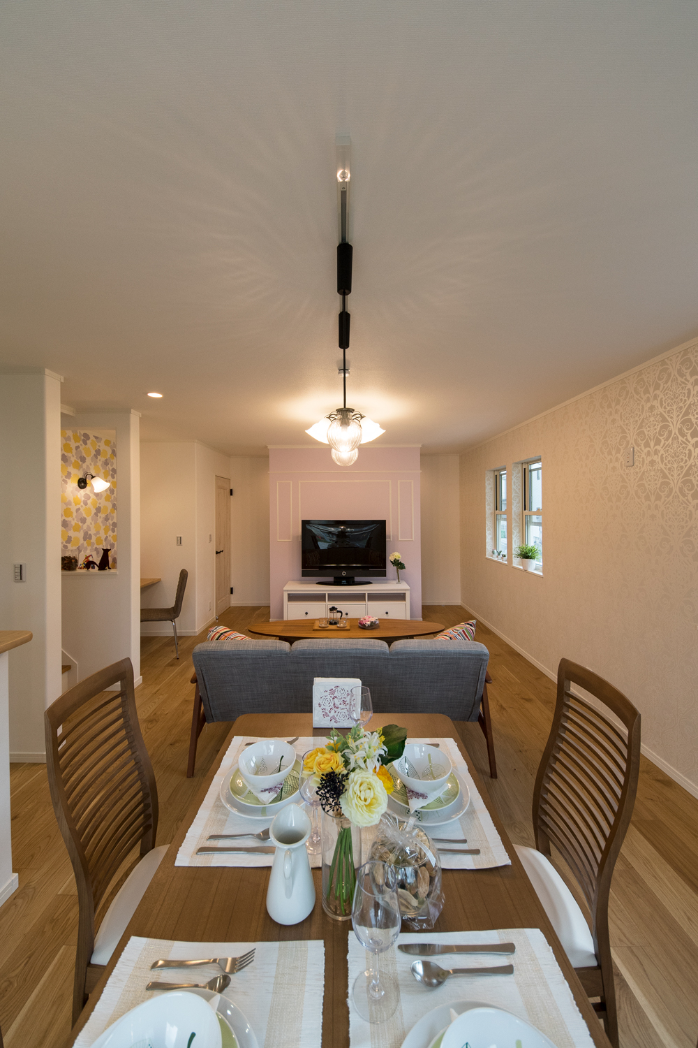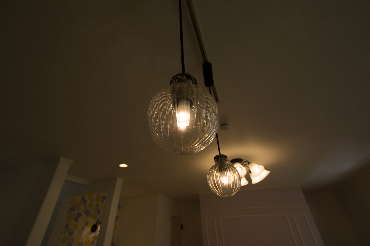 ペンダントライトの柔らかな光が、ダイニングをやさしく照らします。