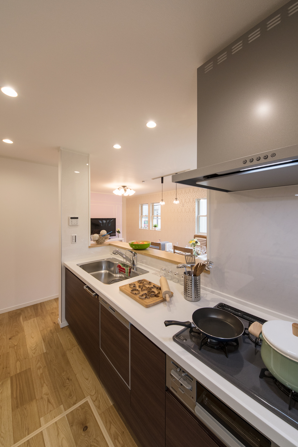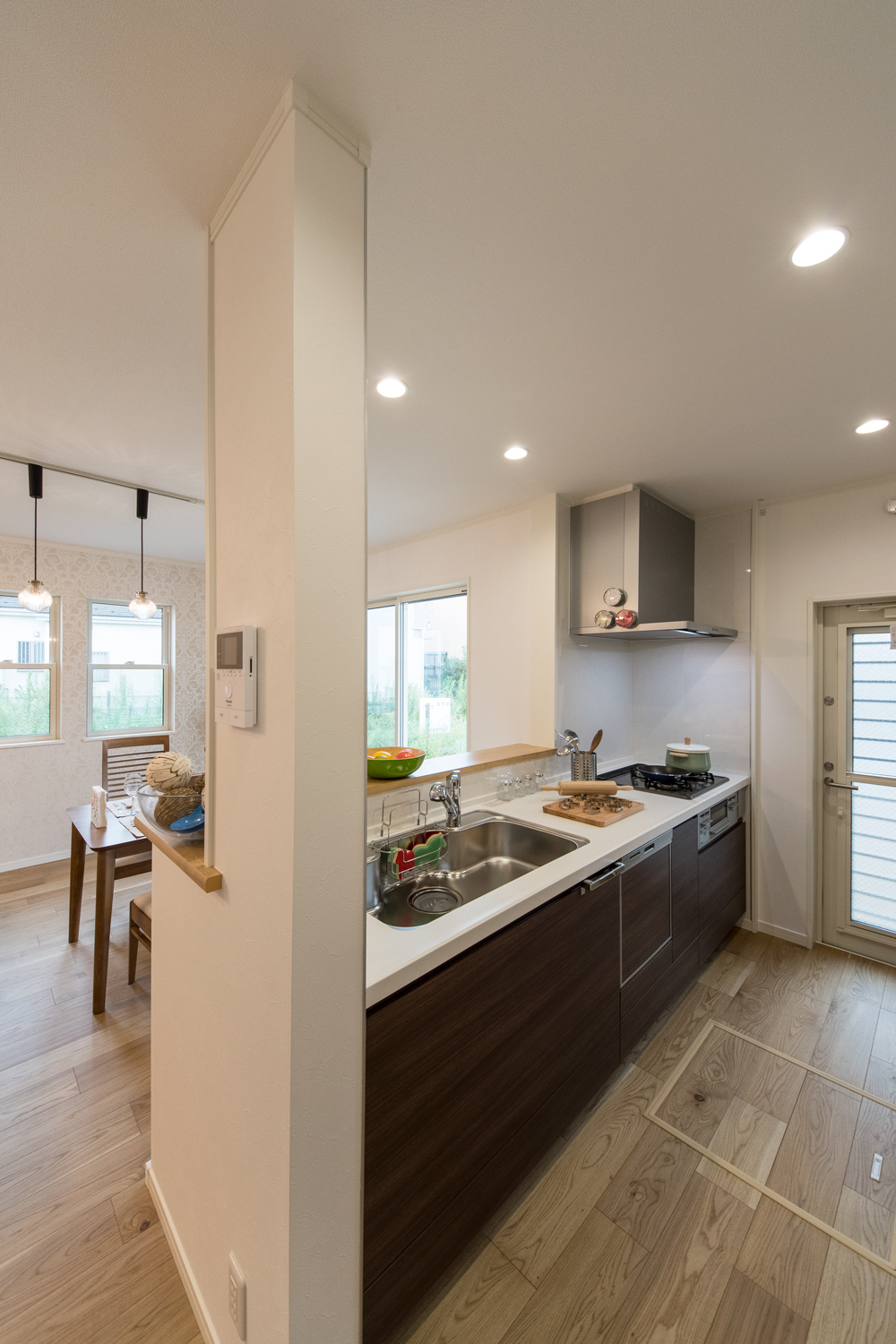 家族の距離が近くなる対面式キッチン。家族がいつもそばに居られる安心感が生まれます。