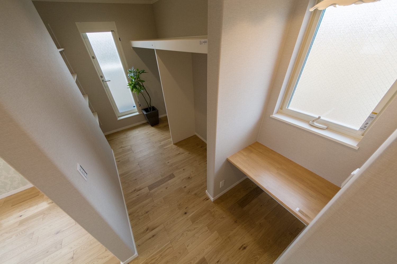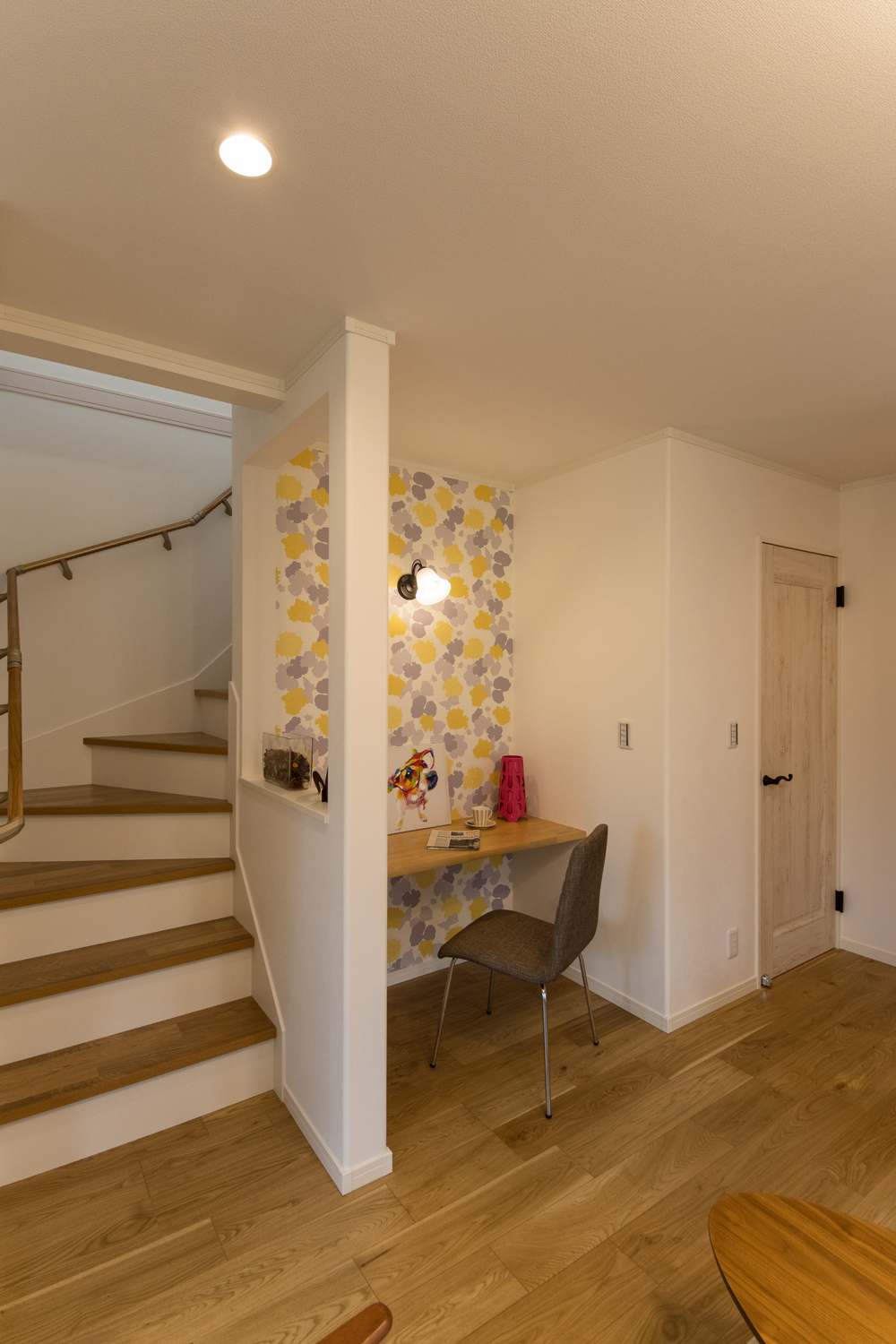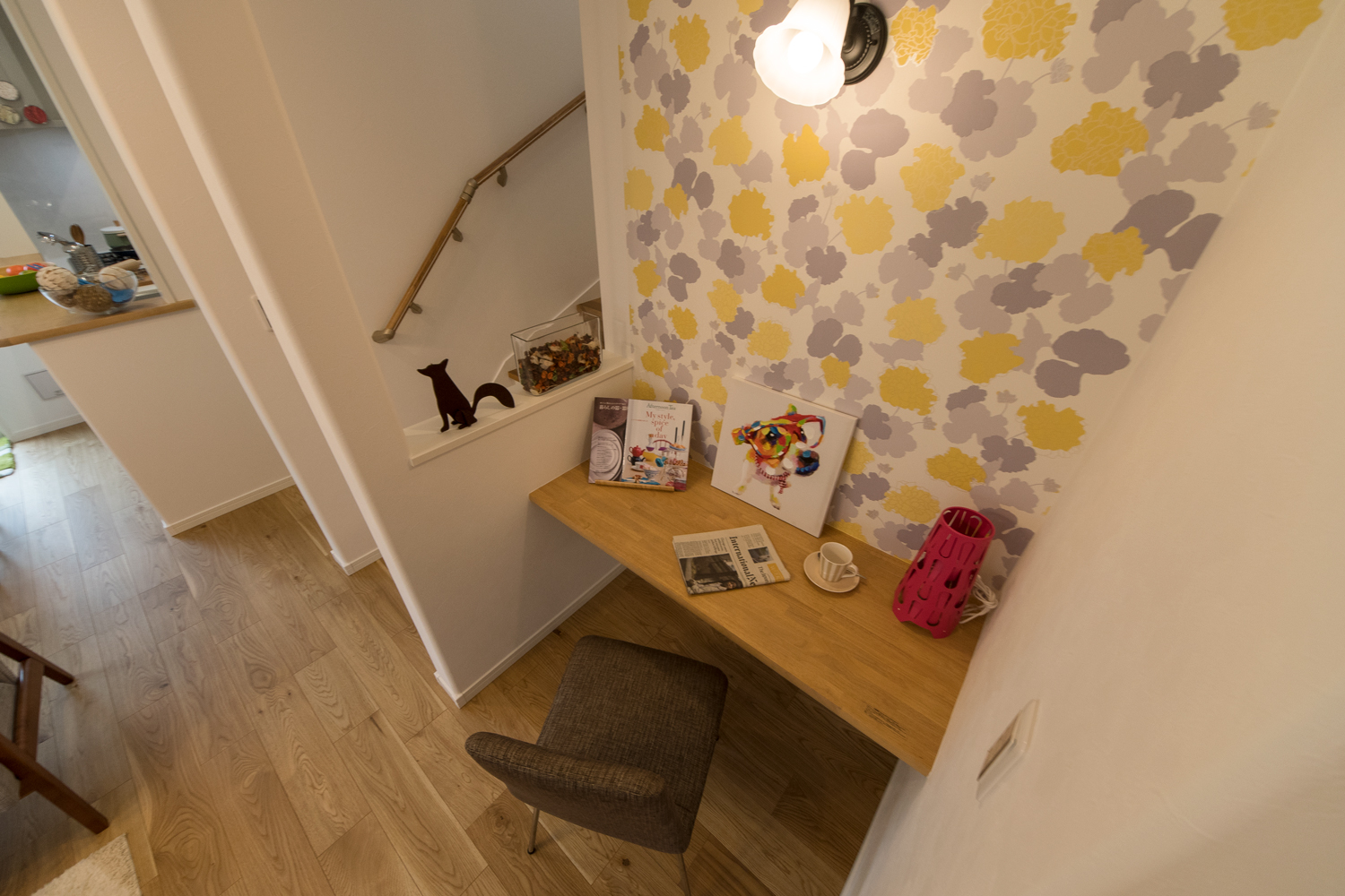 お子様の勉強スペースや趣味、PCスペースとして活用ができるデスクカウンター。カラフルなクロスが空間を彩ります。