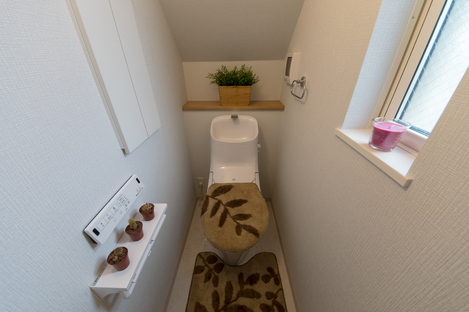 白を基調とした清潔感のある1階トイレ。小窓からの光が明るさをプラスします。