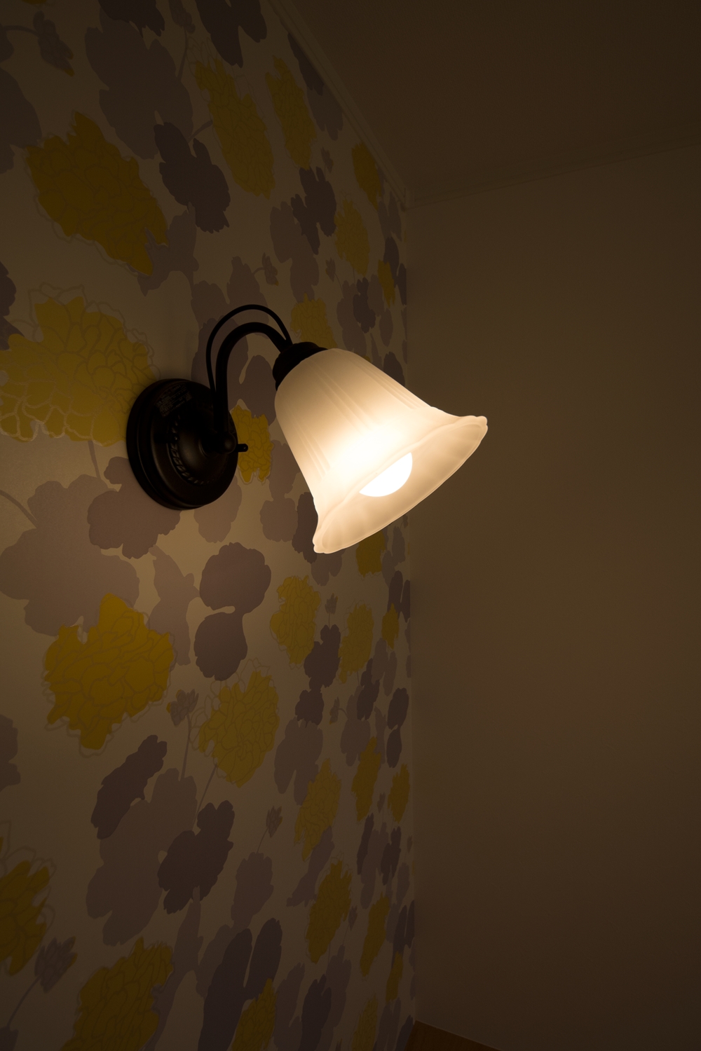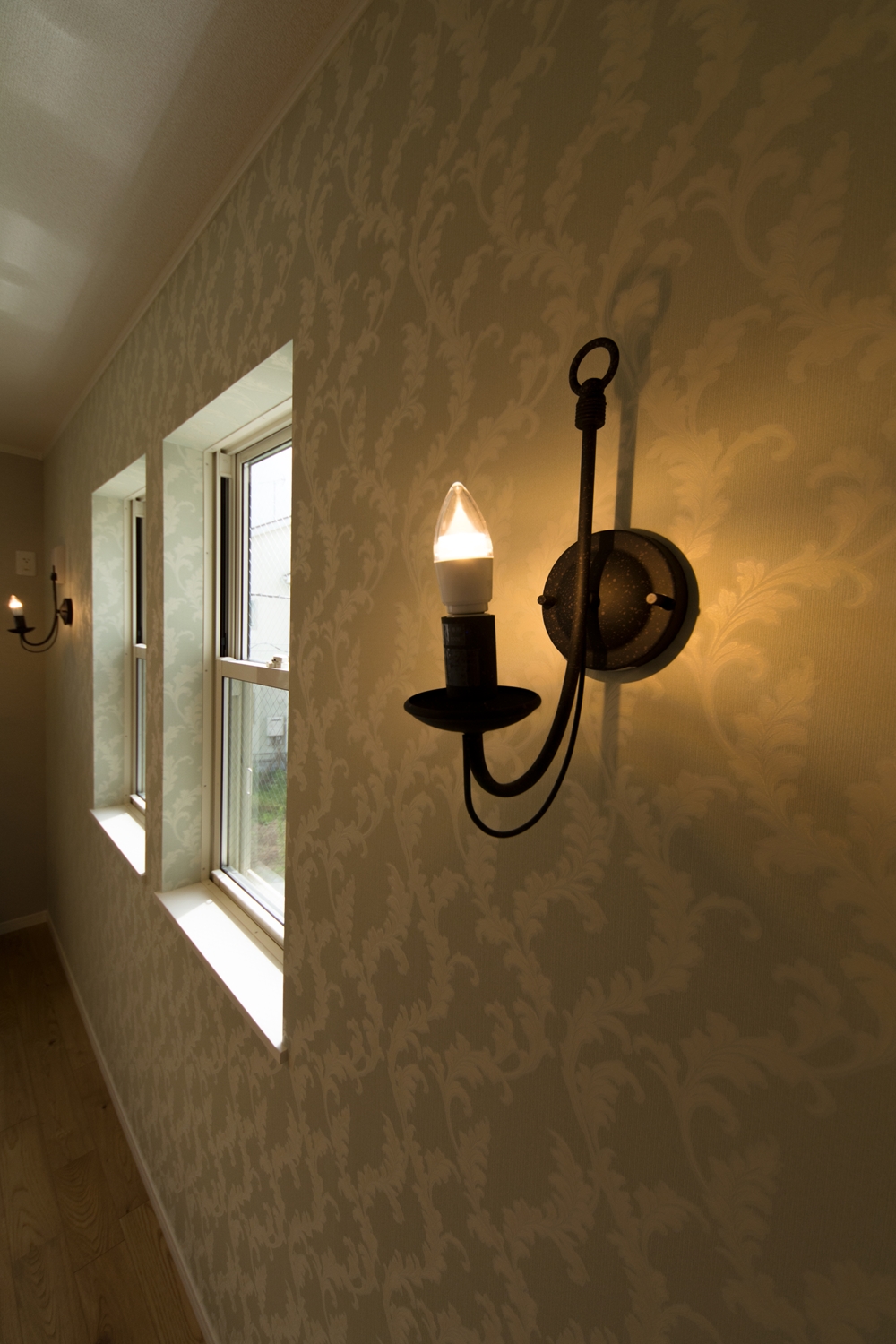 アンティーク調の蝋燭風ウォールランプが空間を彩ります。
