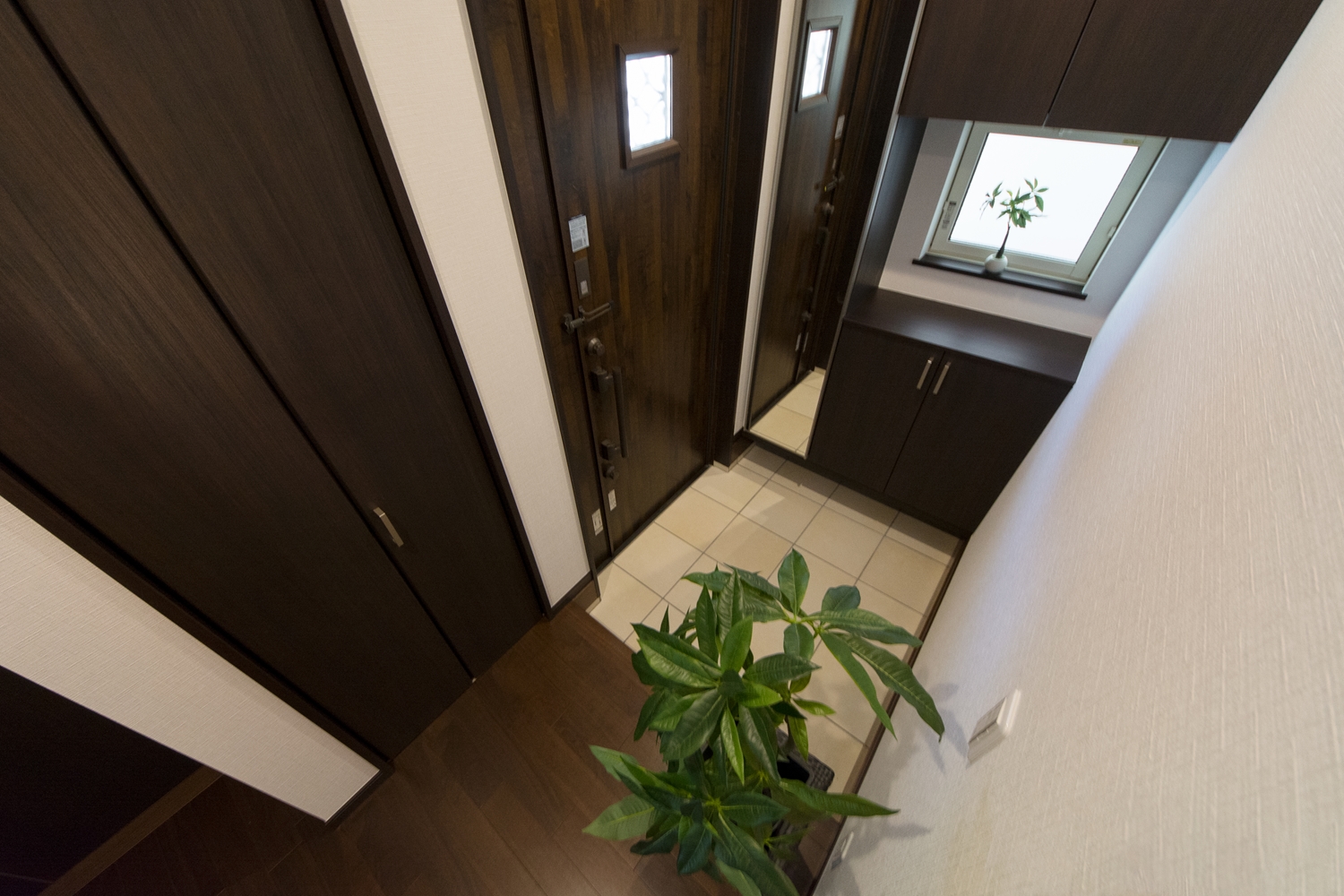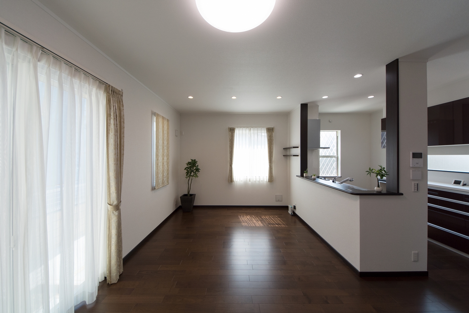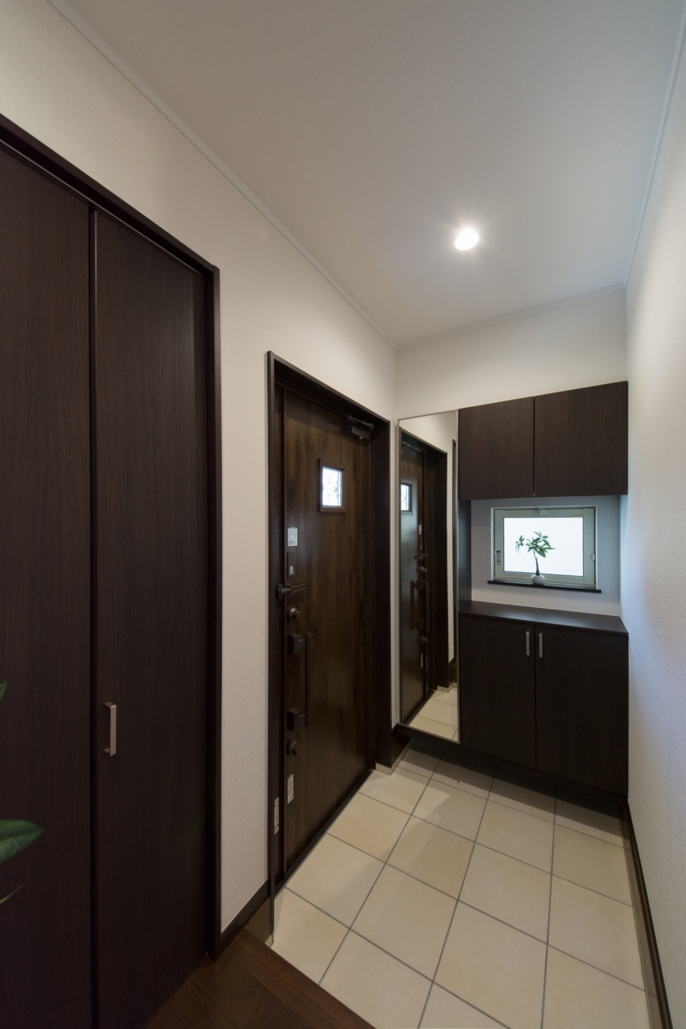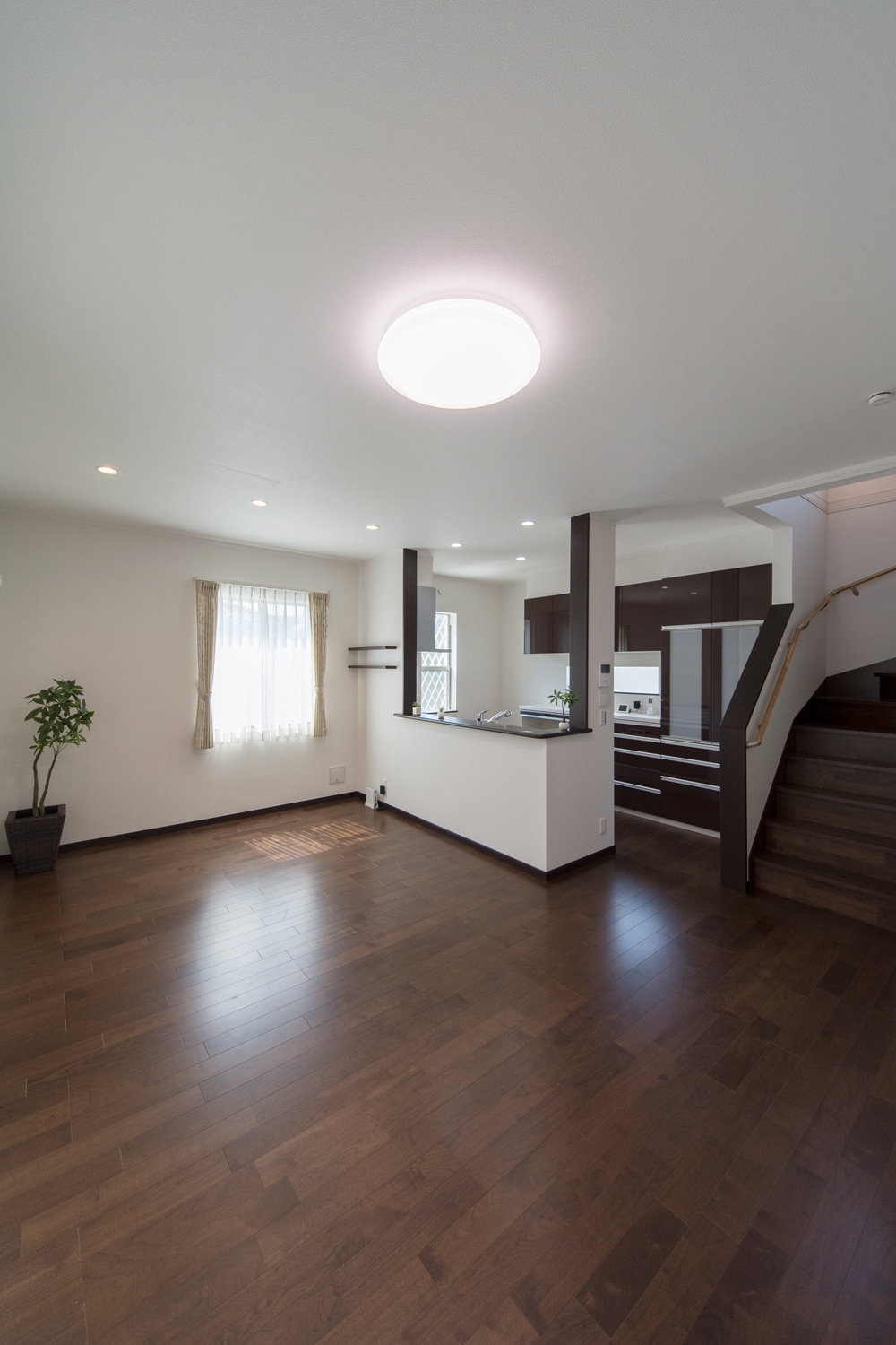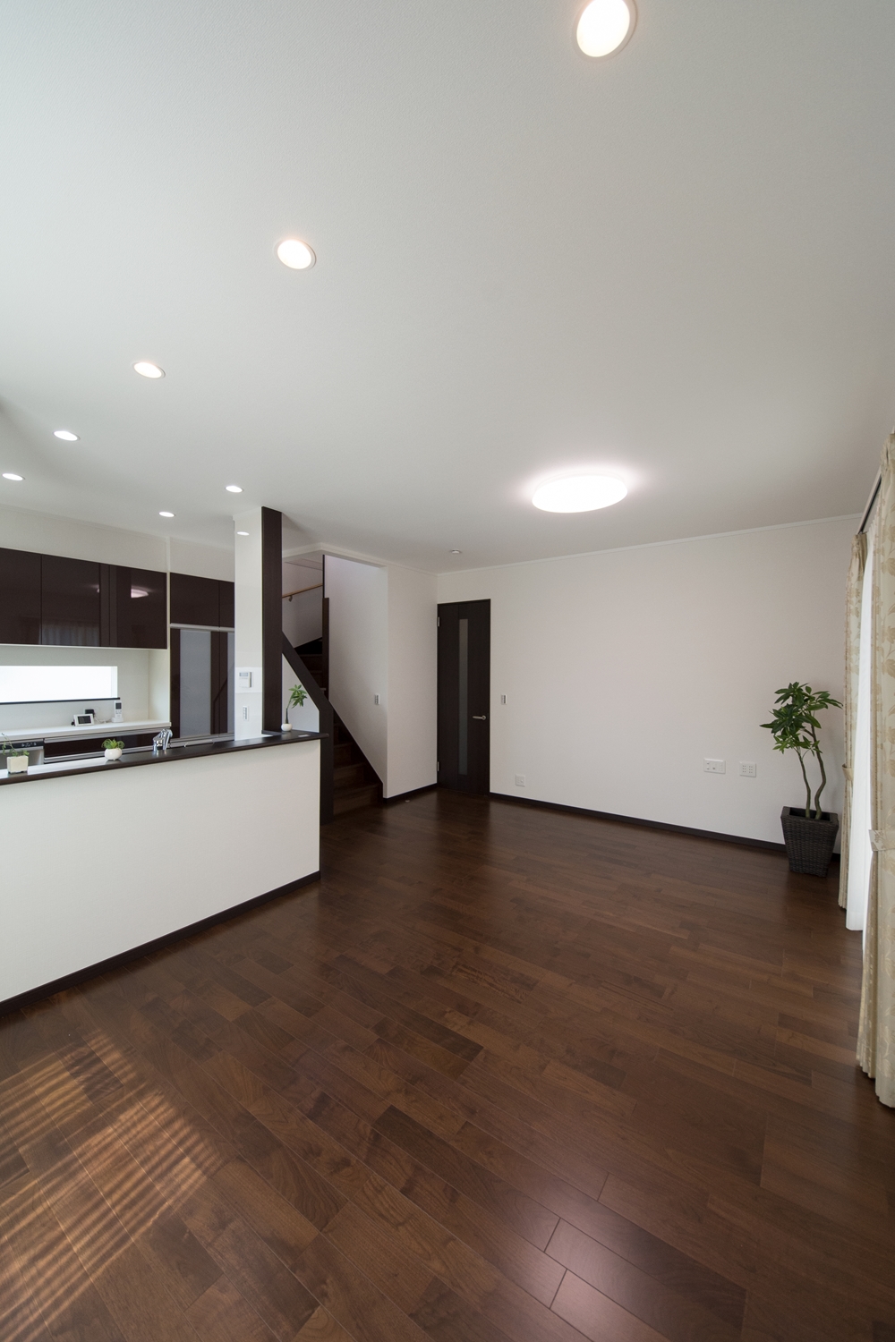 アイボリーを基調に、レンガ模様とブラウンをアクセントにした、ナチュラル&モダンな外観に仕上がりました。室内カラーは、主にダークブラウンとホワイトを使い、シックで大人な雰囲気の空間になりました。