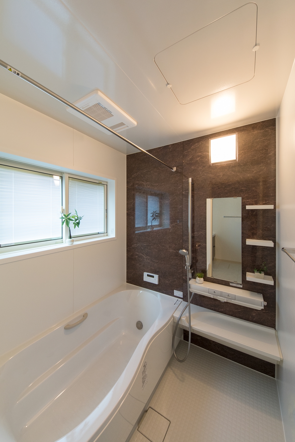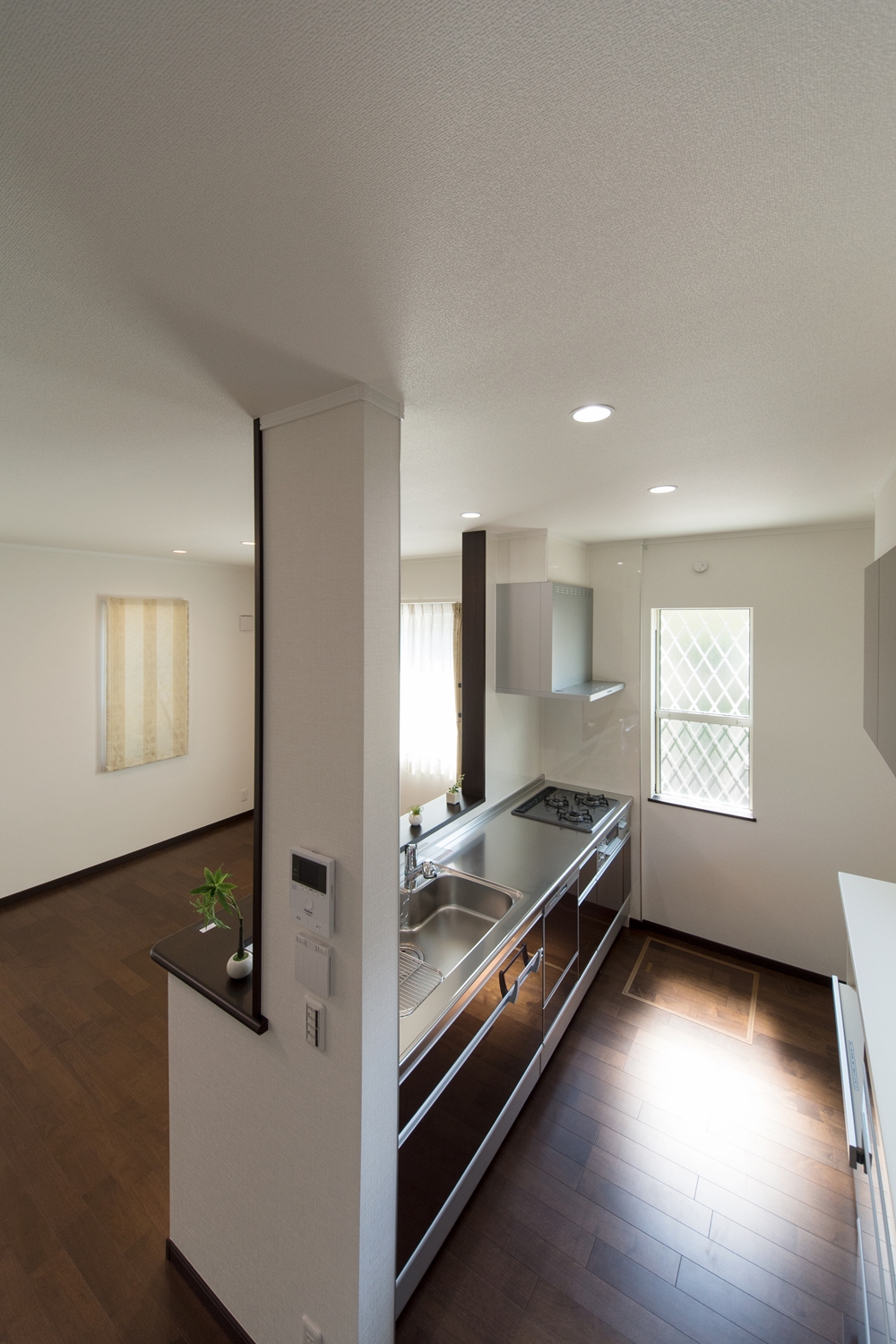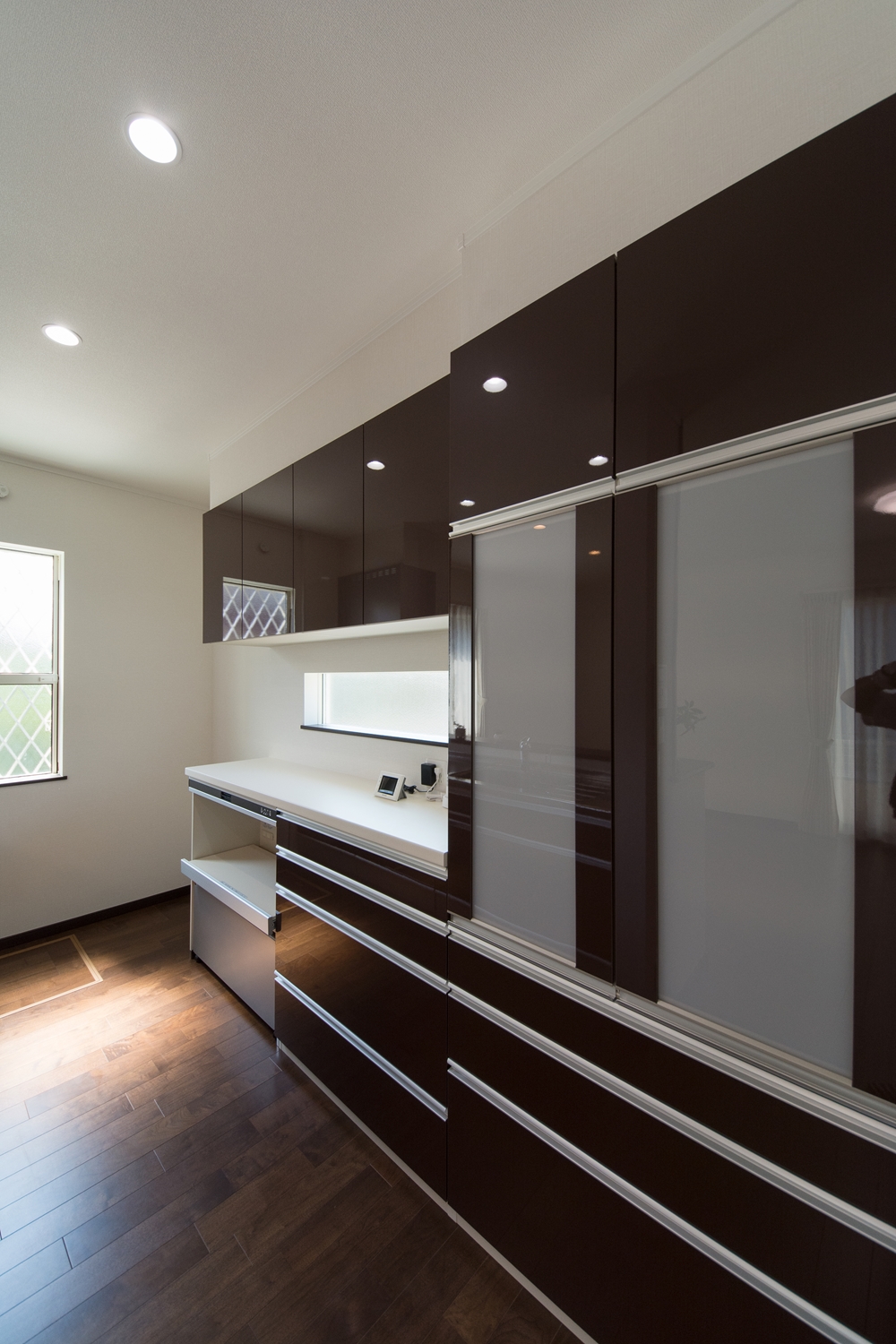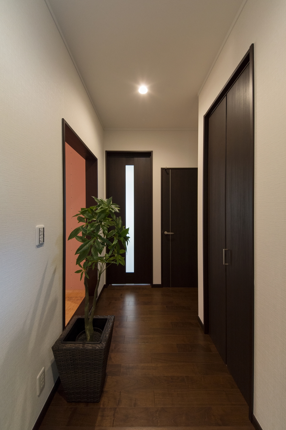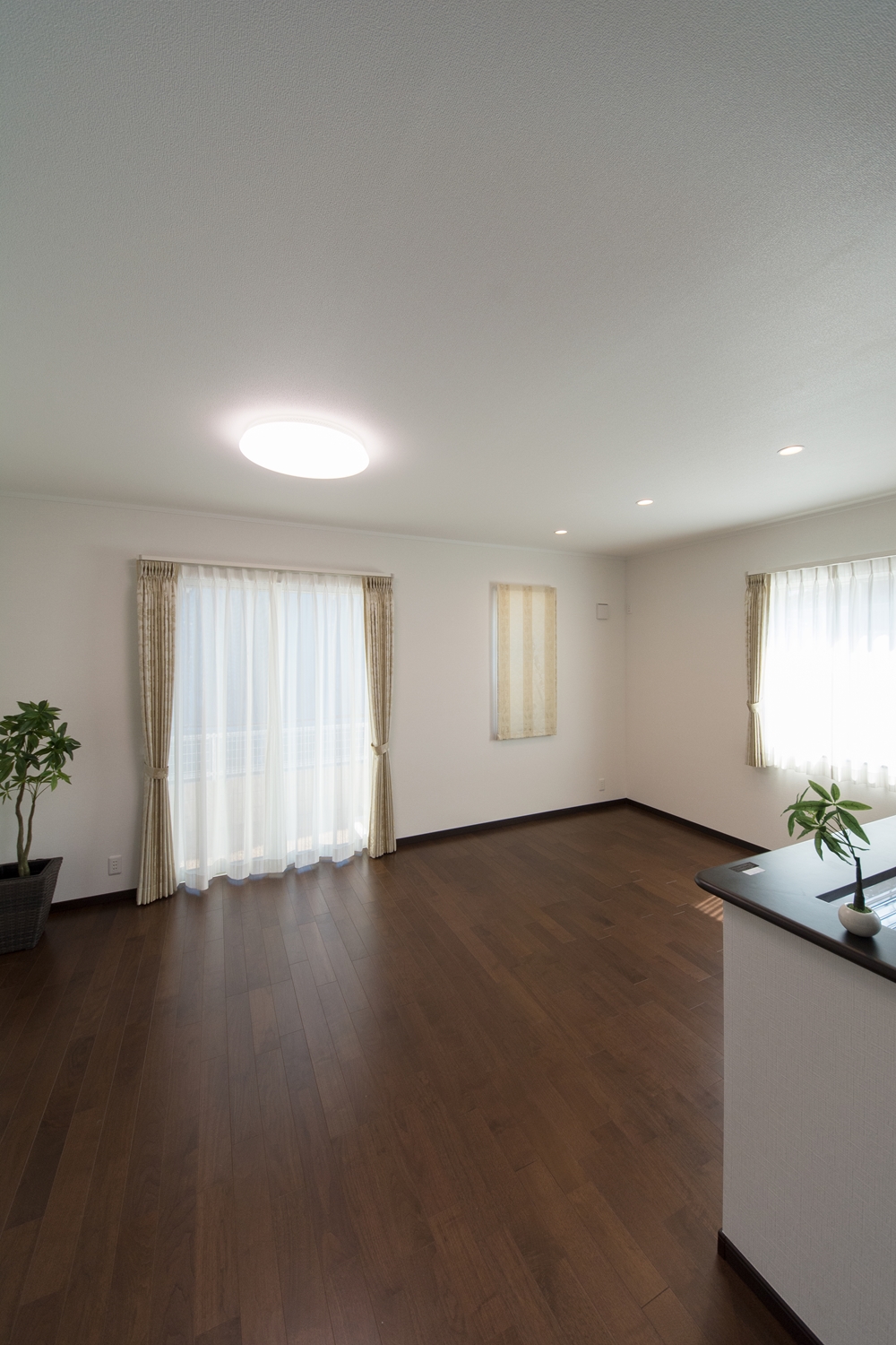 アイボリーを基調に、レンガ模様とブラウンをアクセントにした、ナチュラル&モダンな外観に仕上がりました。室内カラーは、主にダークブラウンとホワイトを使い、シックで大人な雰囲気の空間になりました。