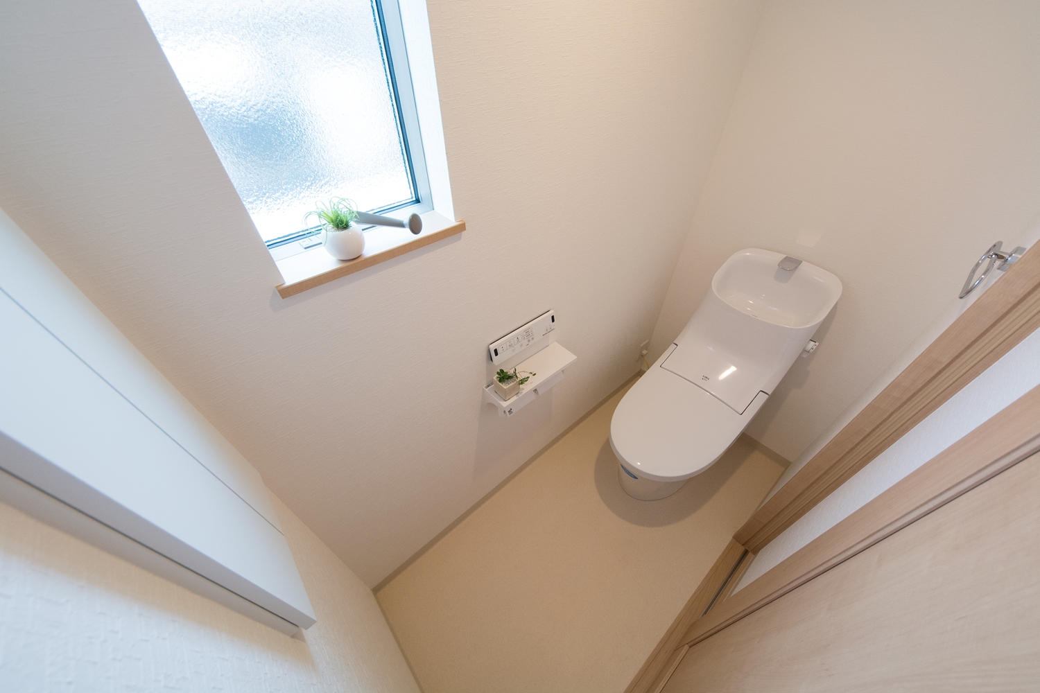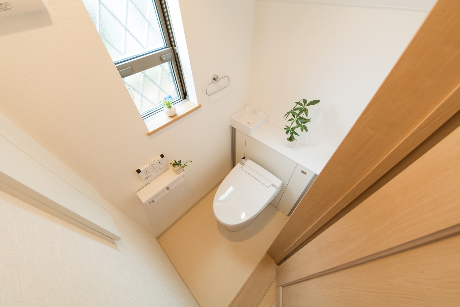 1階トイレ/お掃除しにくいタンクまわりをキャビネットで隠しました。トイレまわりを拭くだけでラクにお手入れできます。