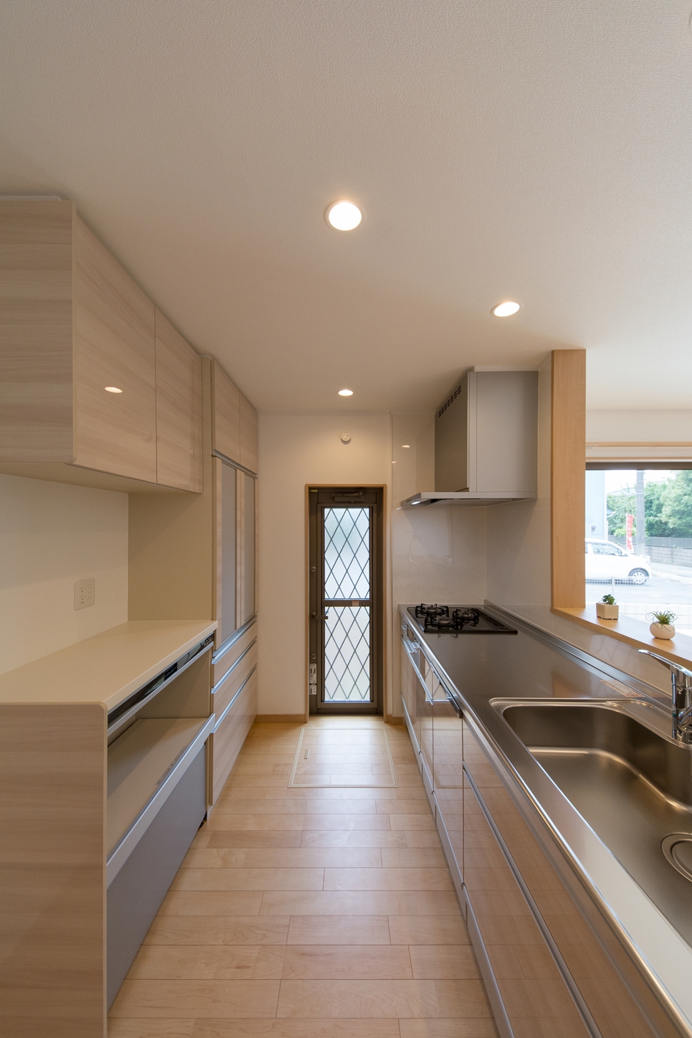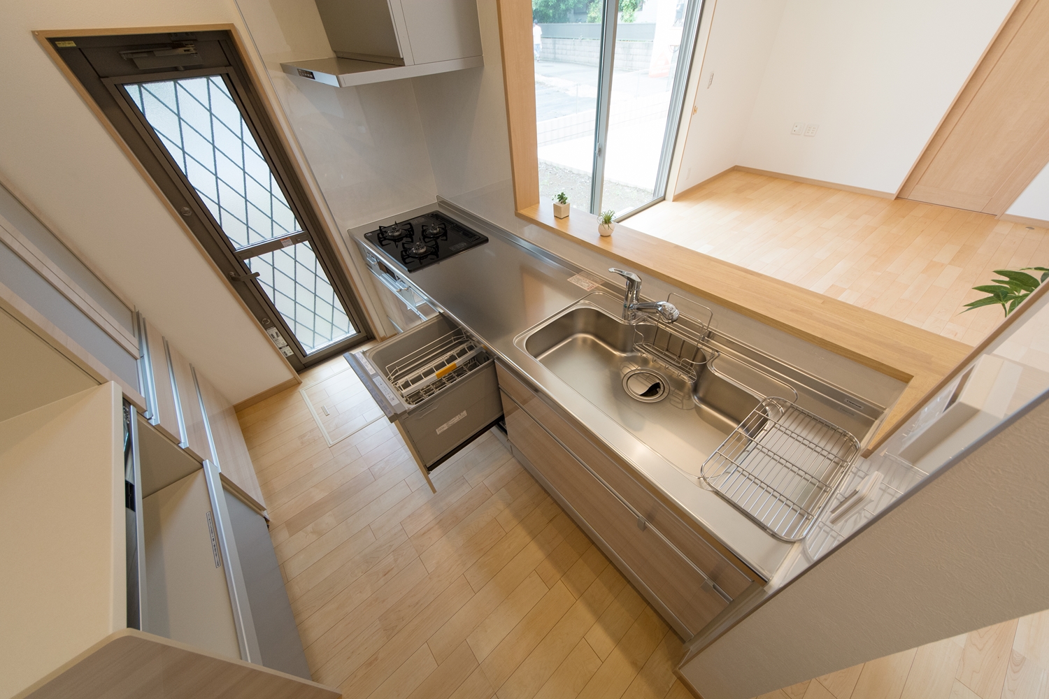 リビング全体を見渡せる対面式キッチン。お子様にもすぐ目が届くので安心してお料理ができます。